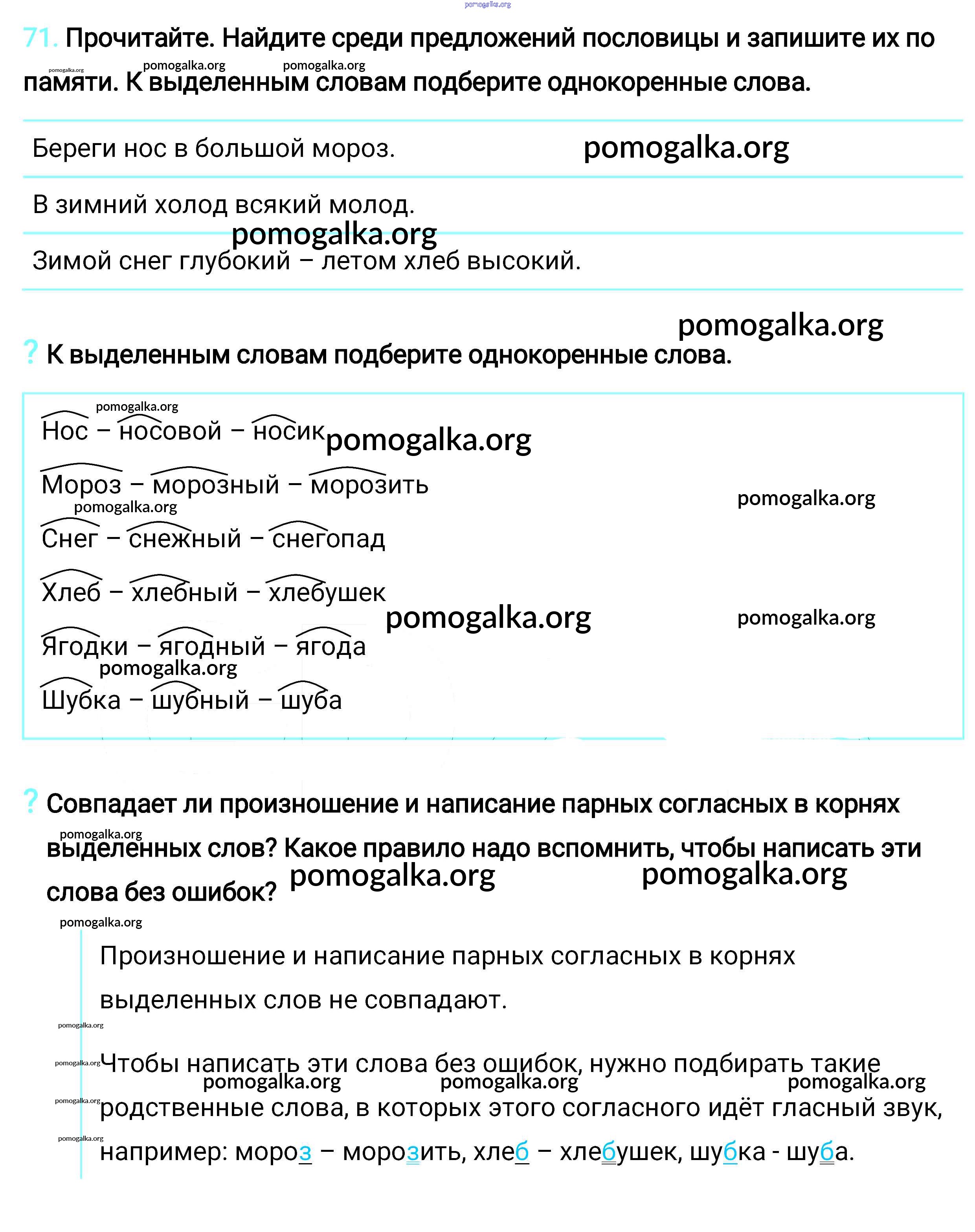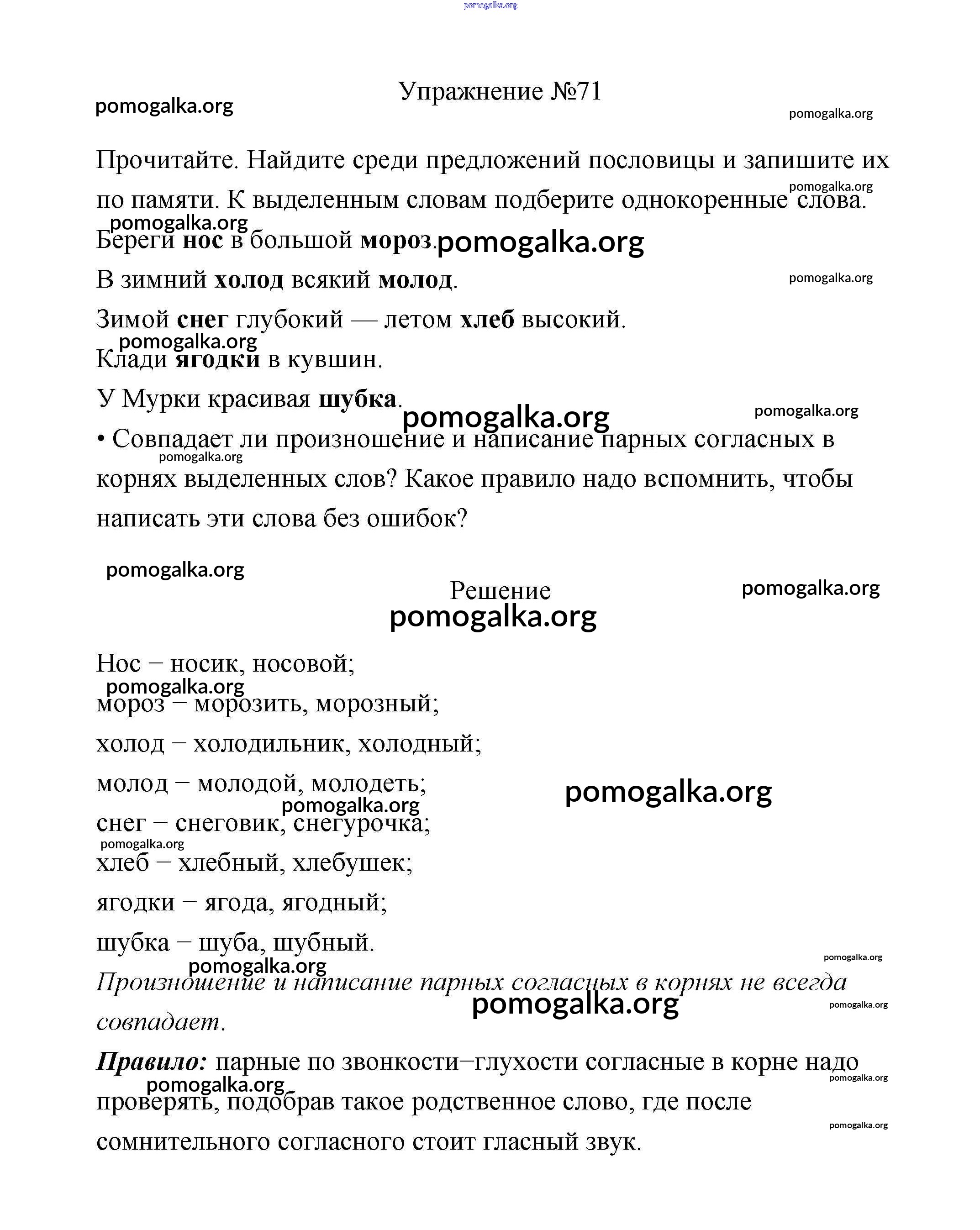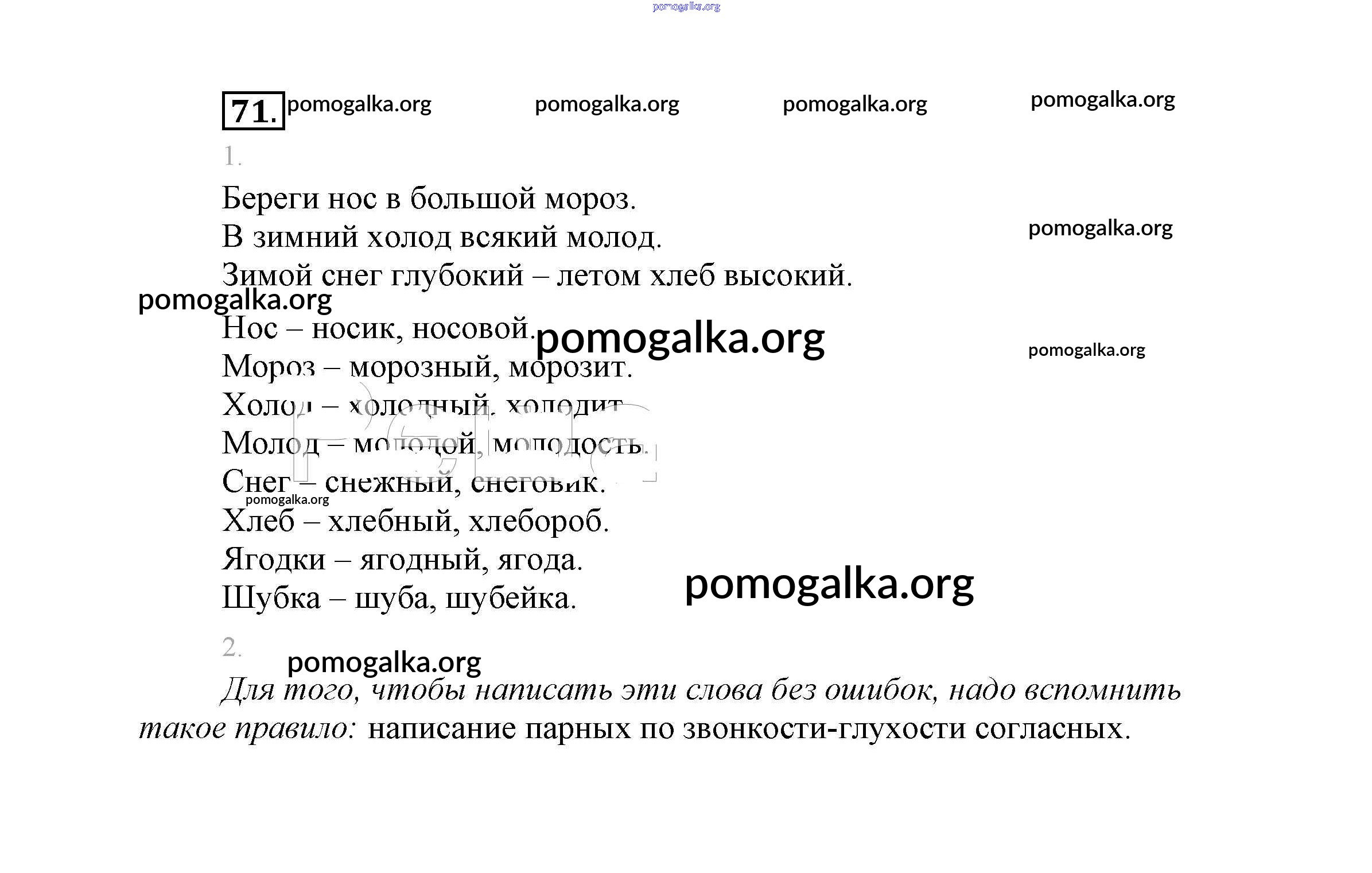 Готовые ответы - Русский язык 2 класс Климанова - упражнение часть 2 71