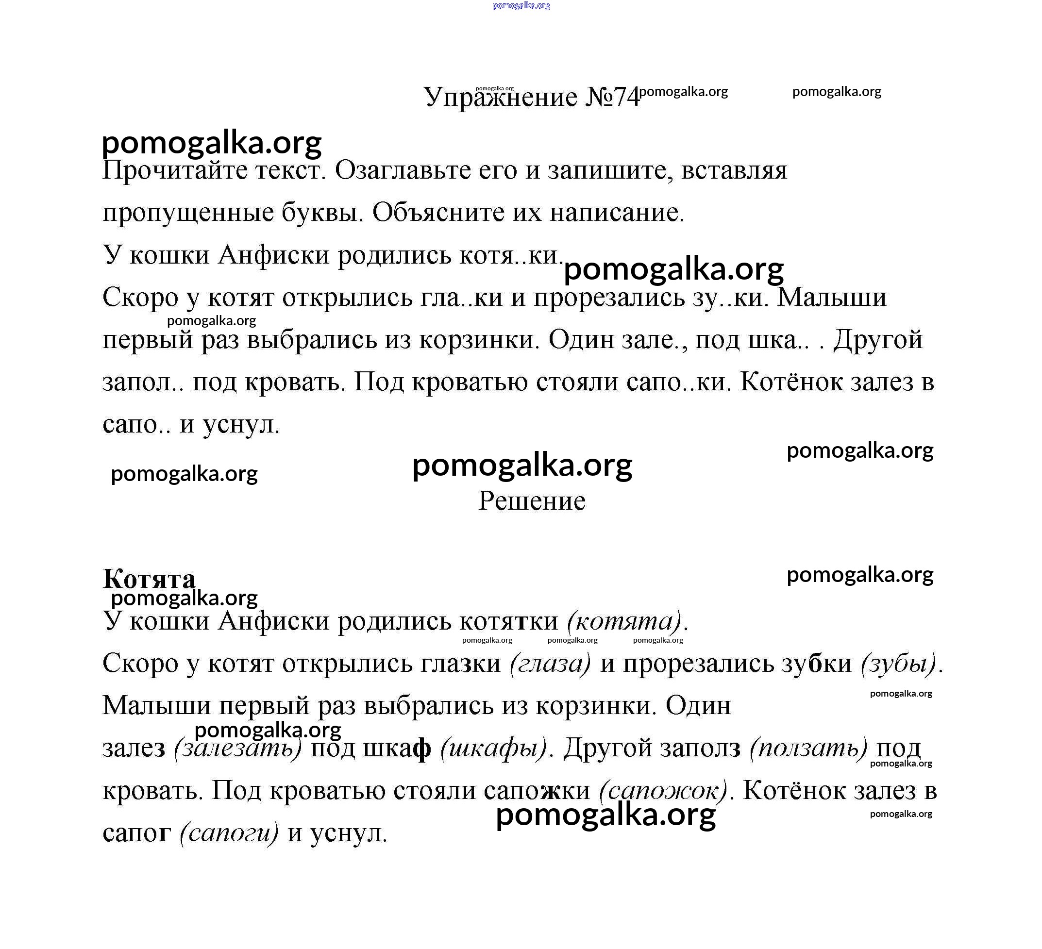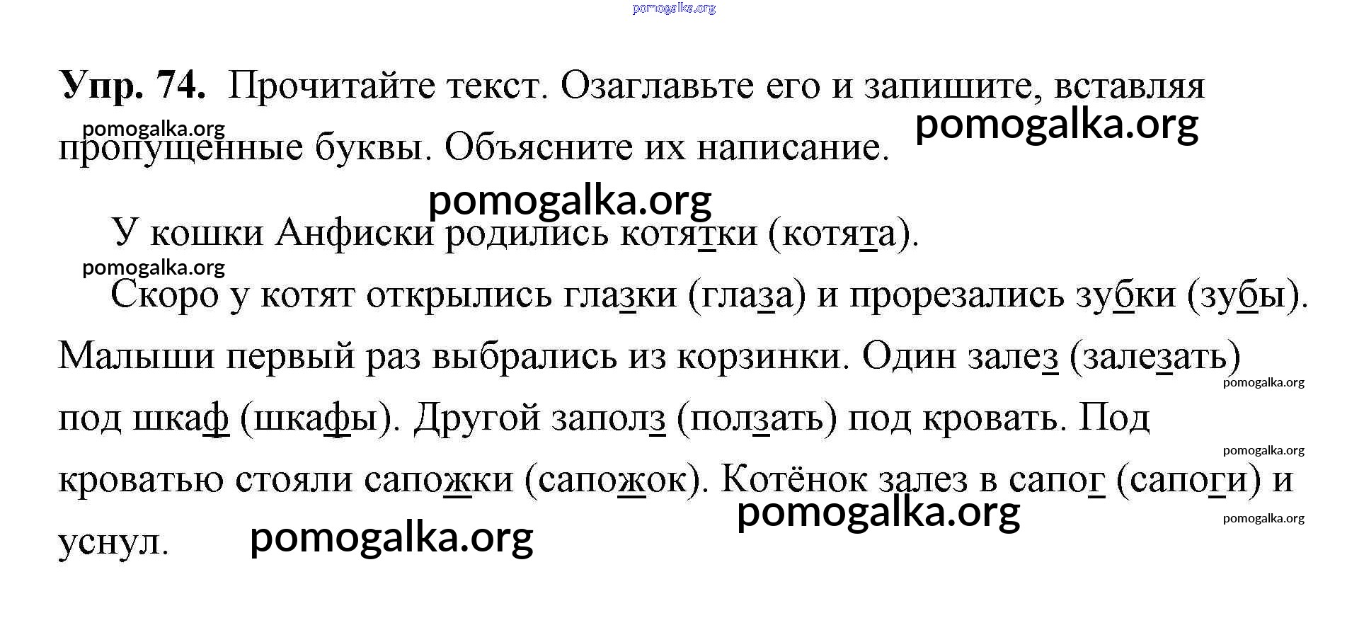 Готовые ответы - Русский язык 2 класс Климанова - упражнение часть 2 74