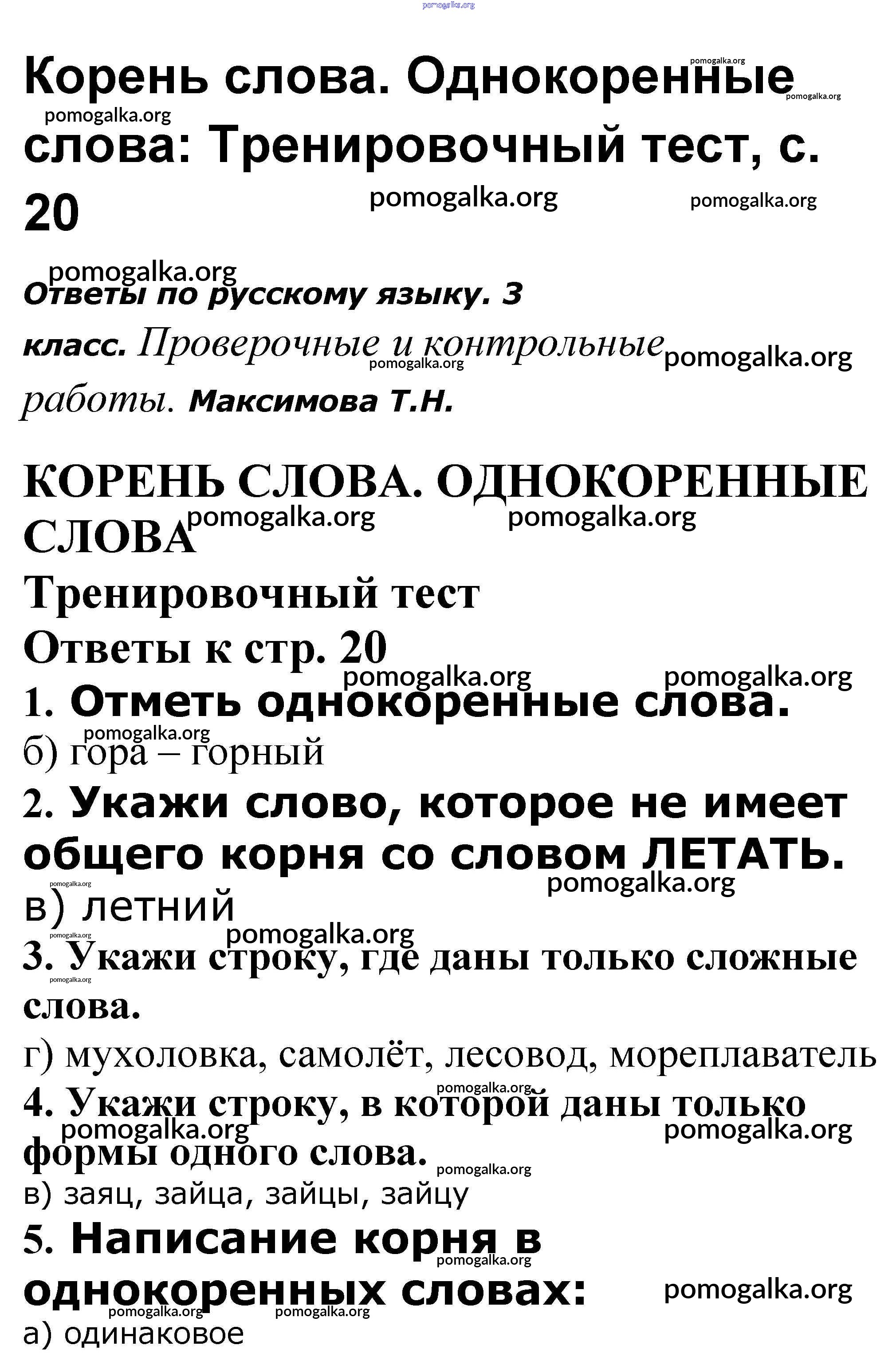 Готовые ответы - Русский язык 3 класс проверочные и контрольные работы Максимова Т.Н. - Корень слова. Однокоренные слова 20