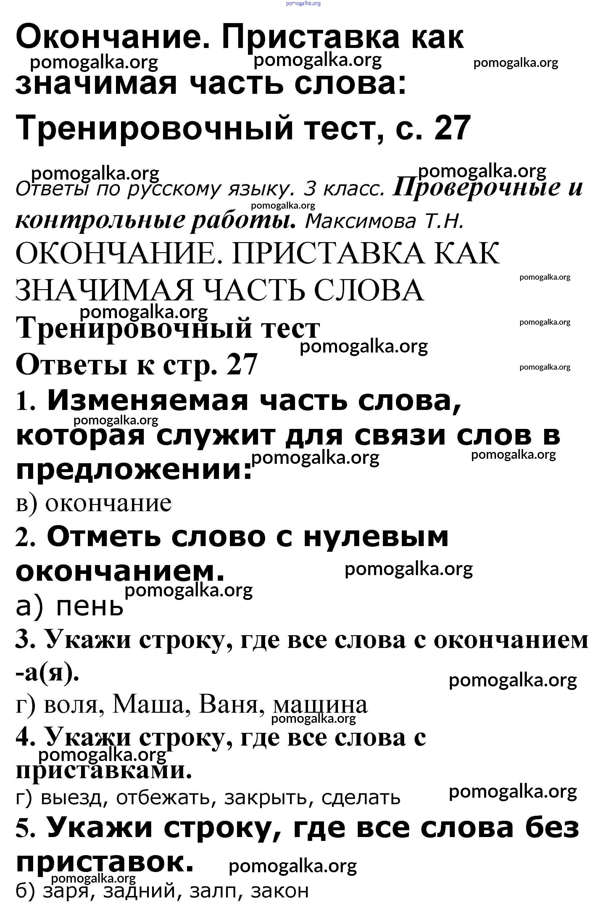 Готовые ответы - Русский язык 3 класс проверочные и контрольные работы Максимова Т.Н. - Окончание. Приставка как значимая часть слова 27
