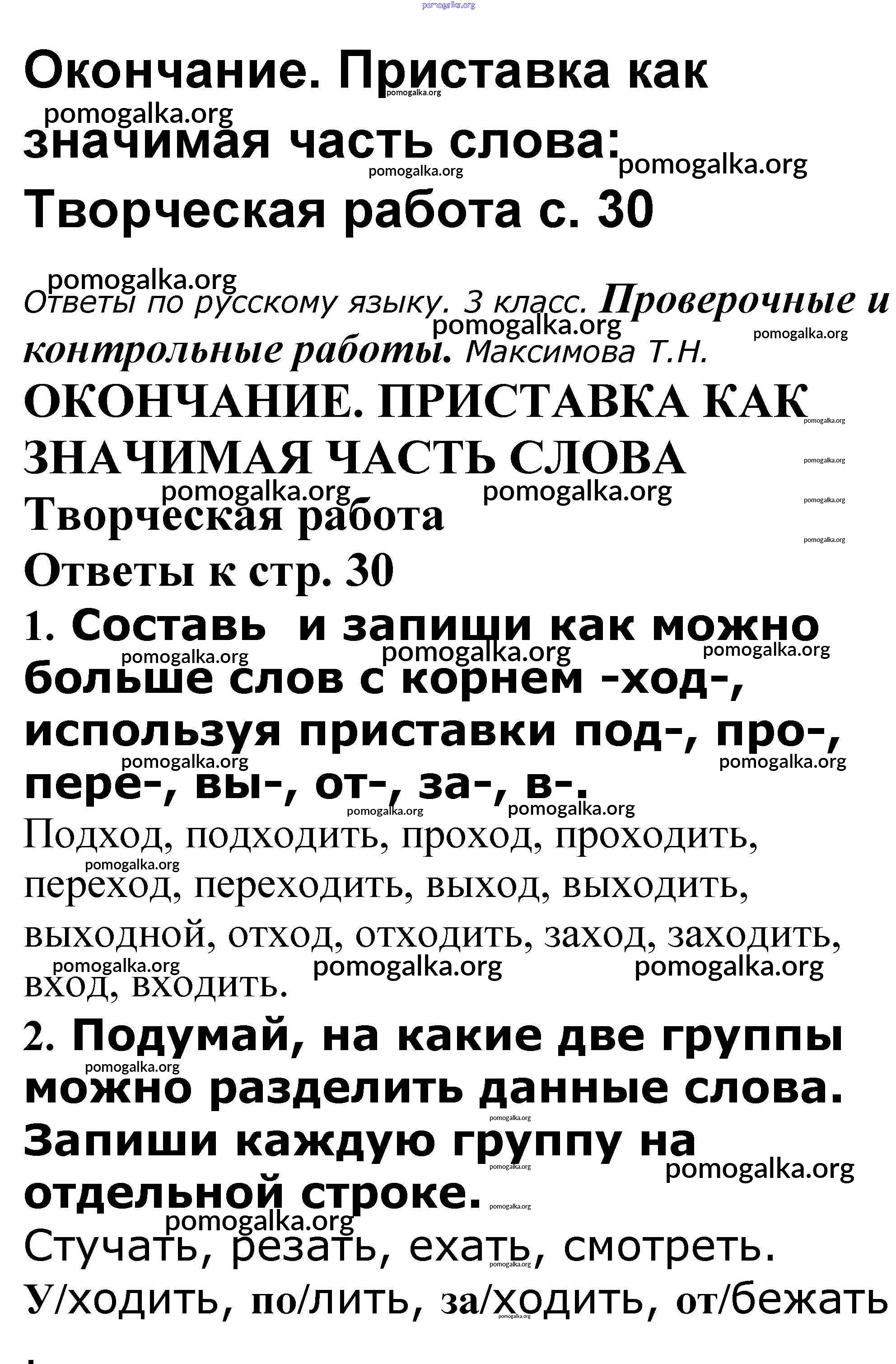 Готовые ответы - Русский язык 3 класс проверочные и контрольные работы Максимова Т.Н. - Окончание. Приставка как значимая часть слова 30