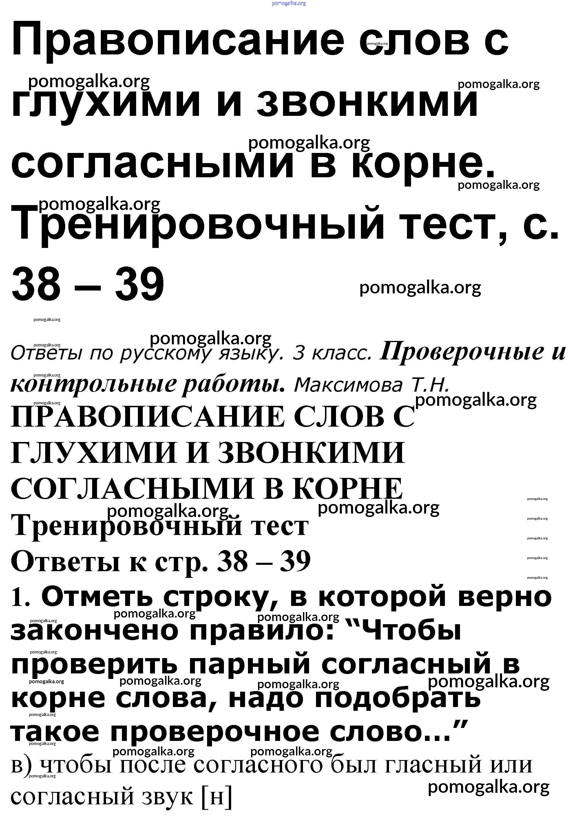 Готовые ответы - Русский язык 3 класс проверочные и контрольные работы Максимова Т.Н. - Правописание слов с глухими и звонкими согласными в корне 38