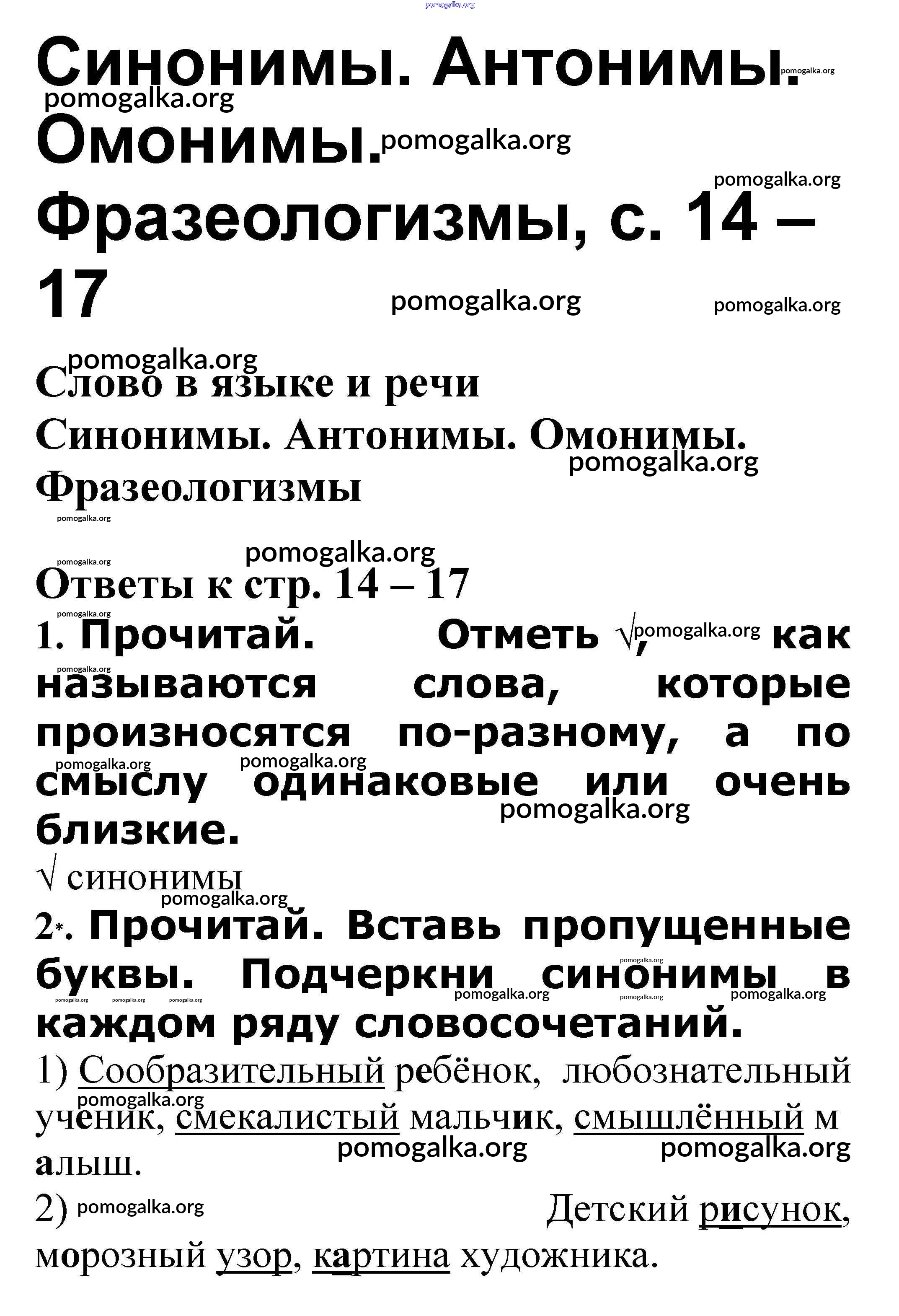 Готовые ответы - Русский язык 3 класс проверочные работы Канакина В.П. - Слово в языке и речи 14 – 17