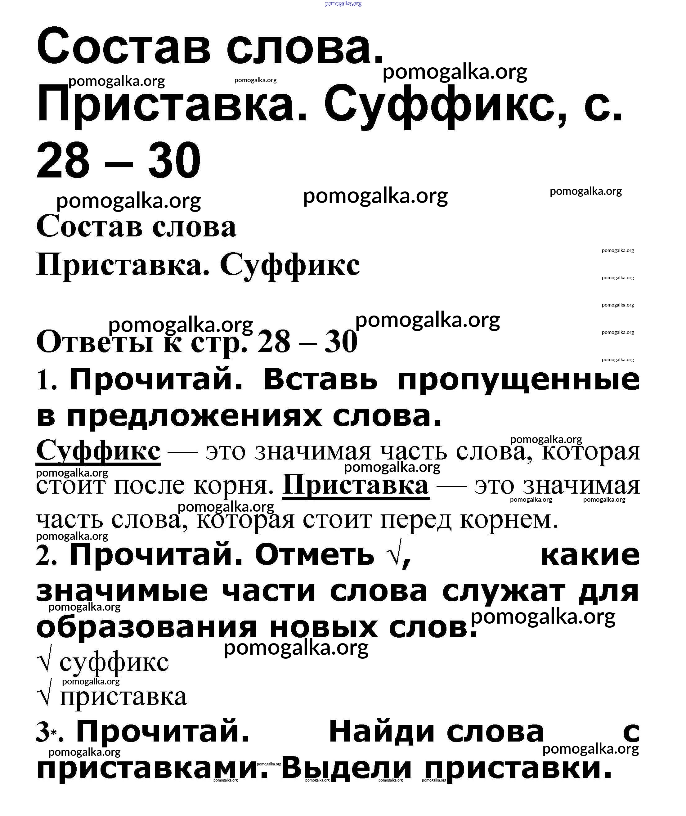 Готовые ответы - Русский язык 3 класс проверочные работы Канакина В.П. - Состав слова 28 – 30