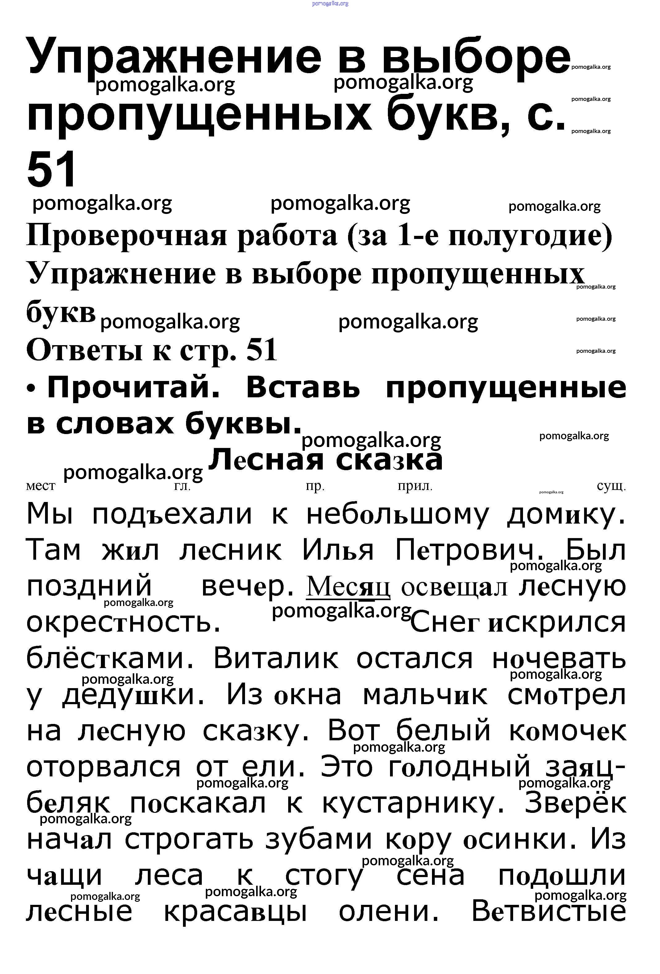 Готовые ответы - Русский язык 3 класс проверочные работы Канакина В.П. - Проверочная работа (за 1-е полугодие) 51