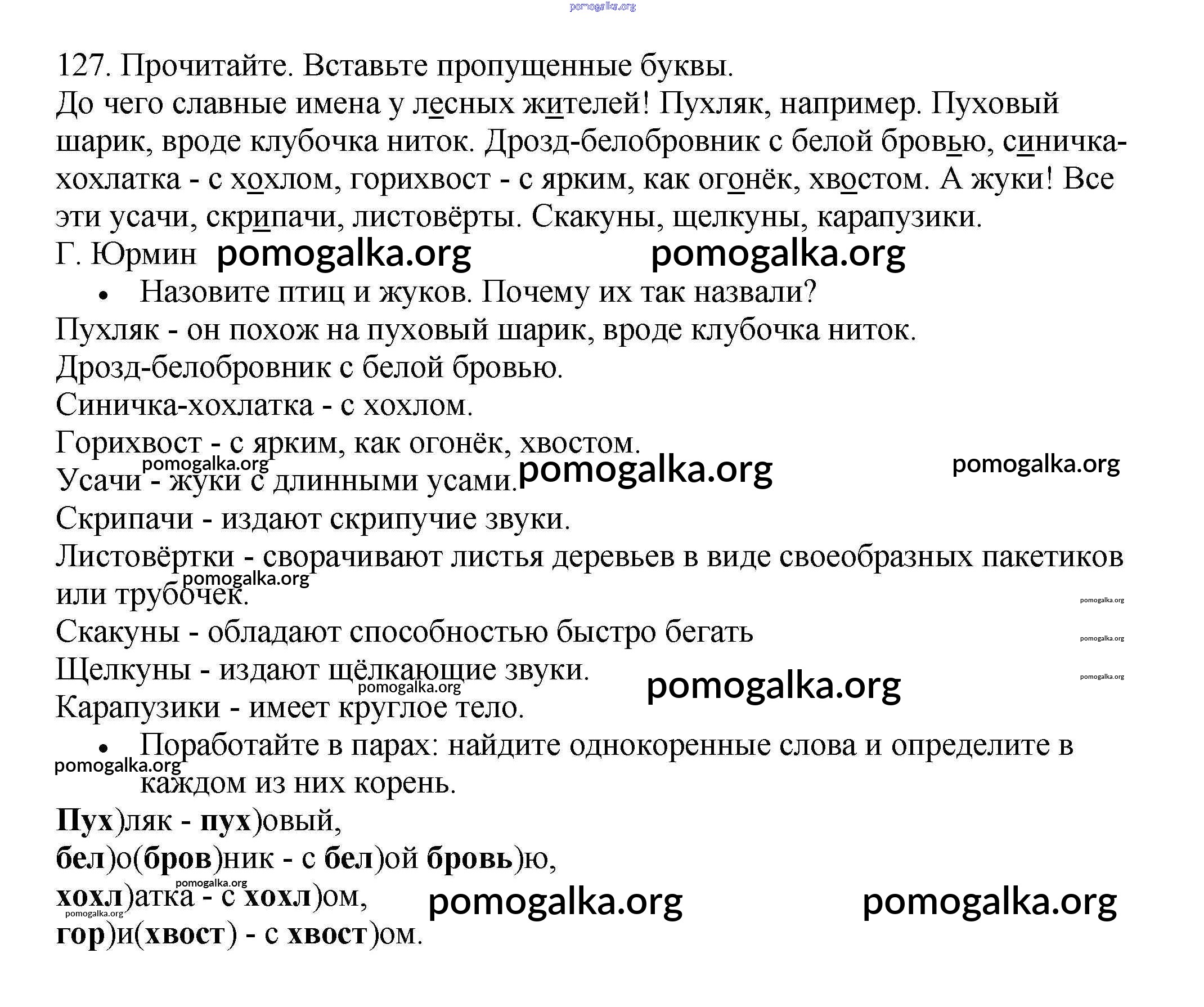 Готовые ответы - Русский язык 3 класс рабочая тетрадь Канакина В.П. - часть 1. задание 127