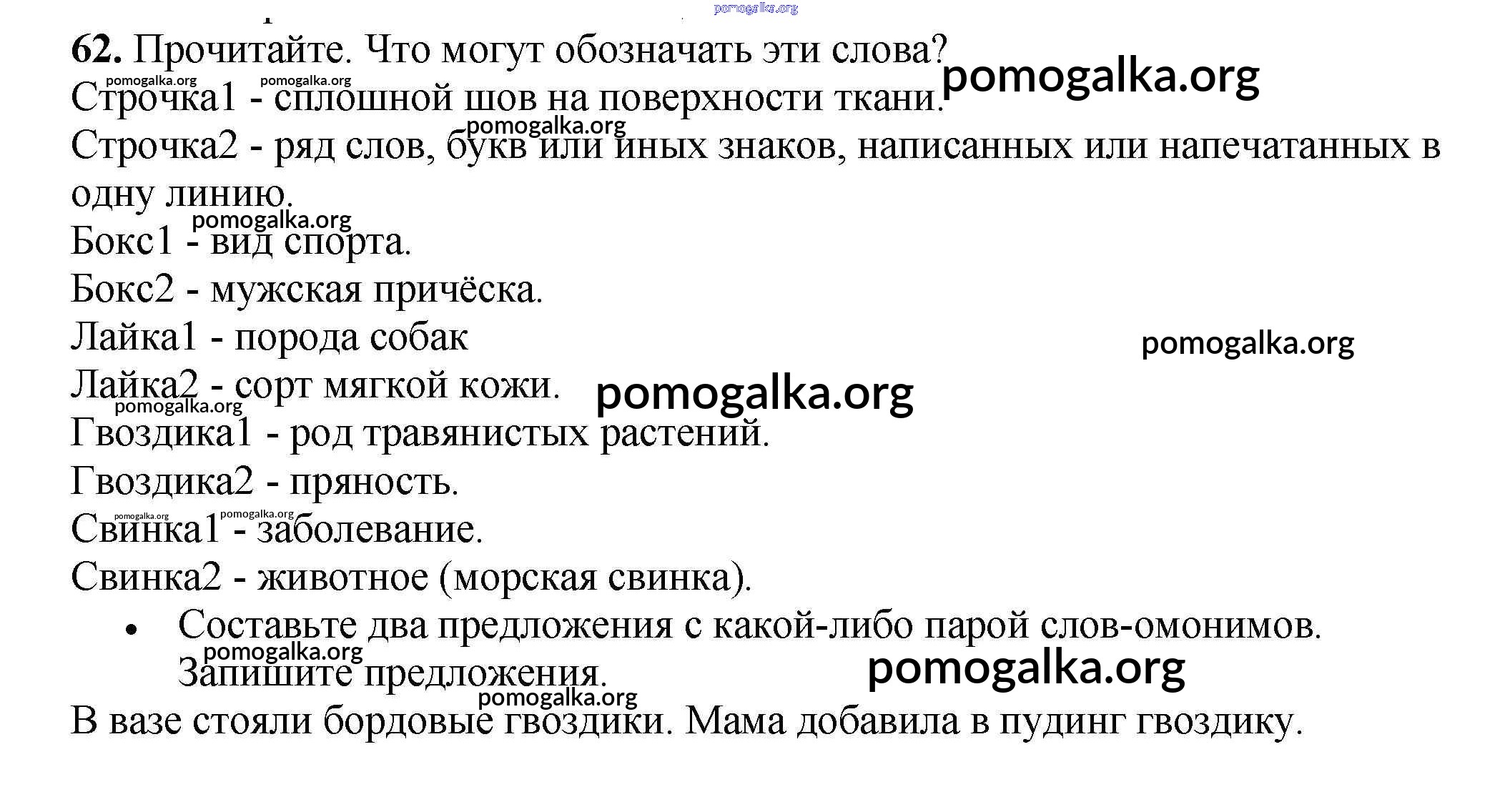 Готовые ответы - Русский язык 3 класс рабочая тетрадь Канакина В.П. - часть 1. задание 62