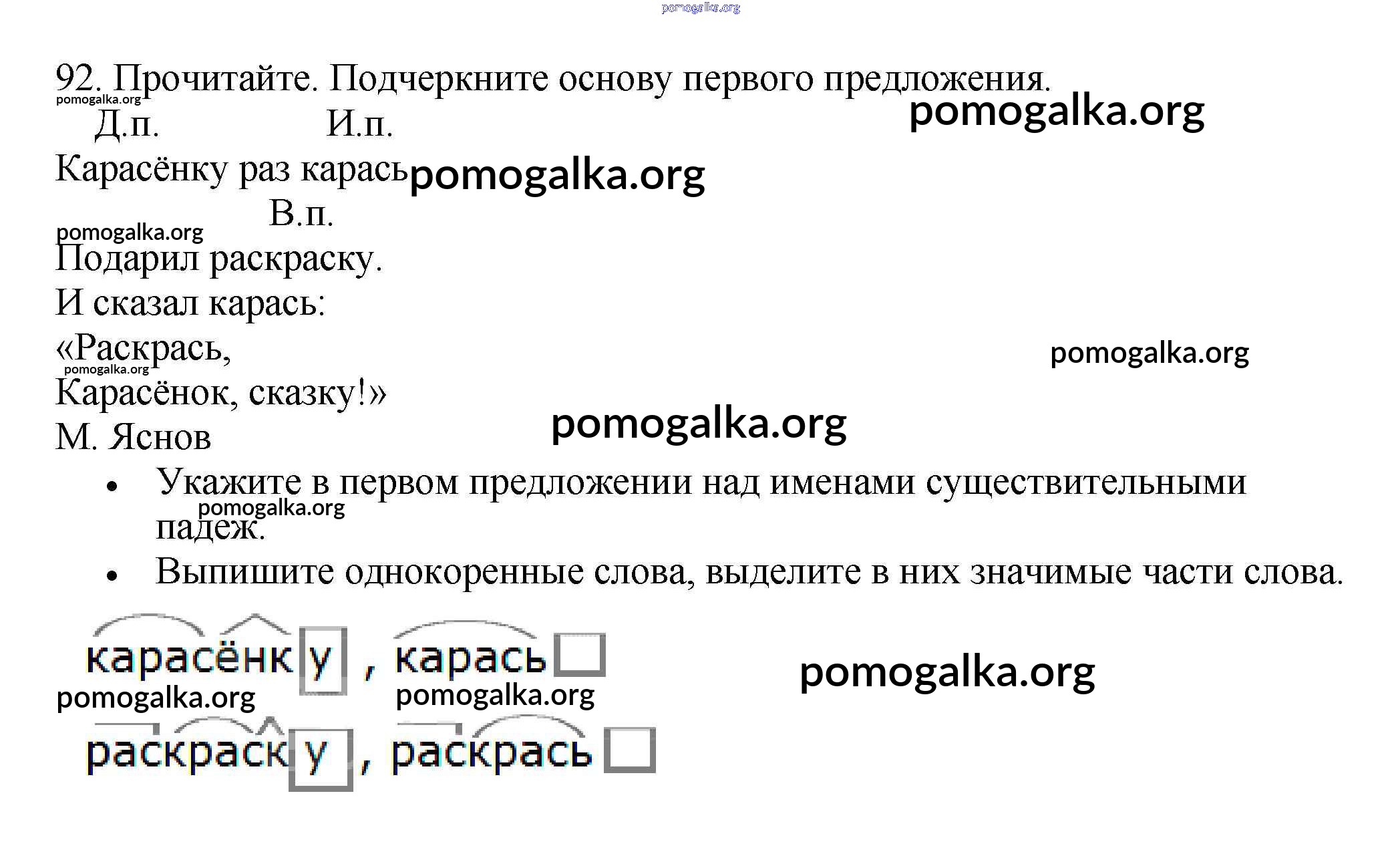 Готовые ответы - Русский язык 3 класс рабочая тетрадь Канакина В.П. - часть 2. задание 92