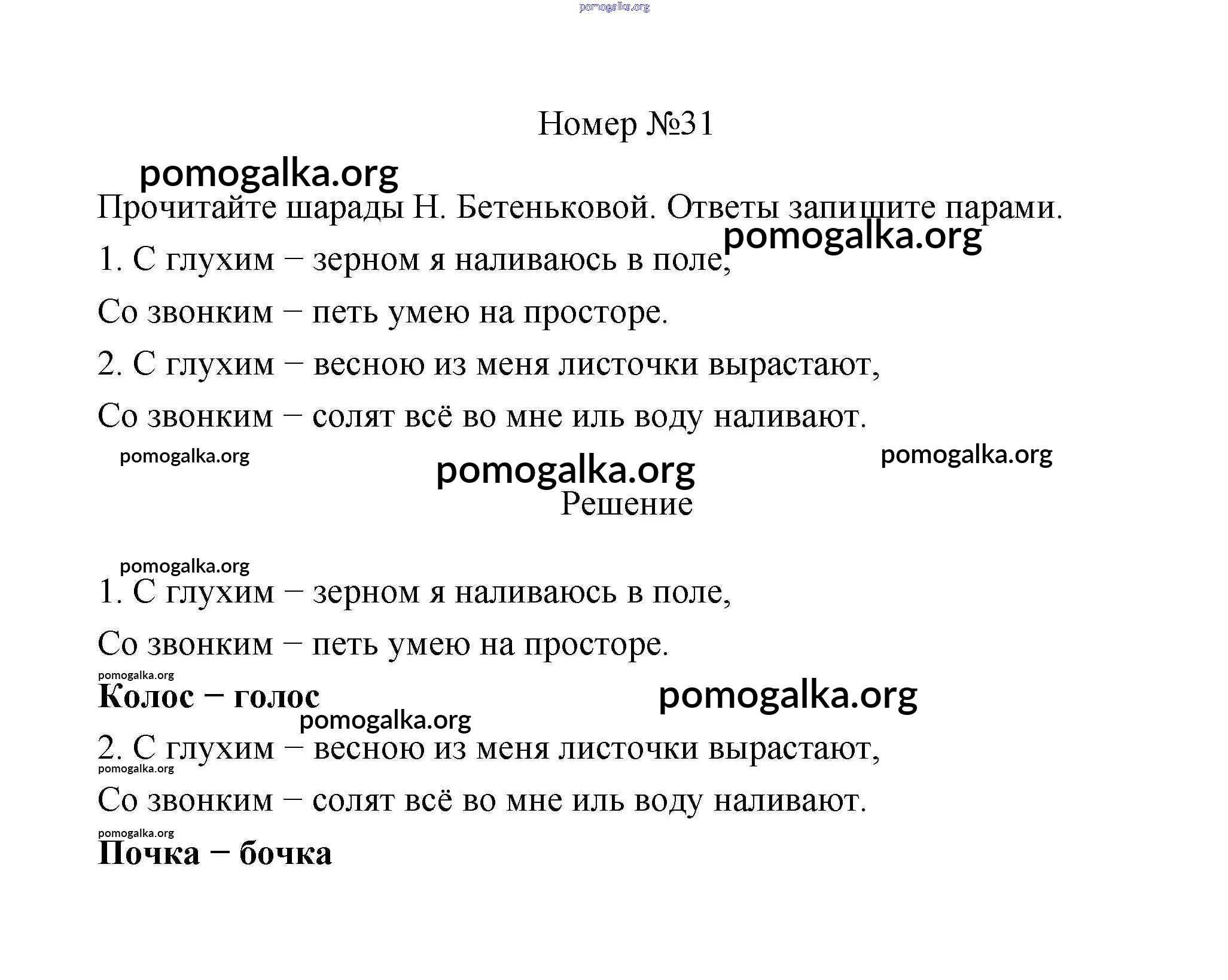 Готовые ответы - Русский язык 3 класс рабочая тетрадь Климанова Л.Ф. - часть 1. задание № 31