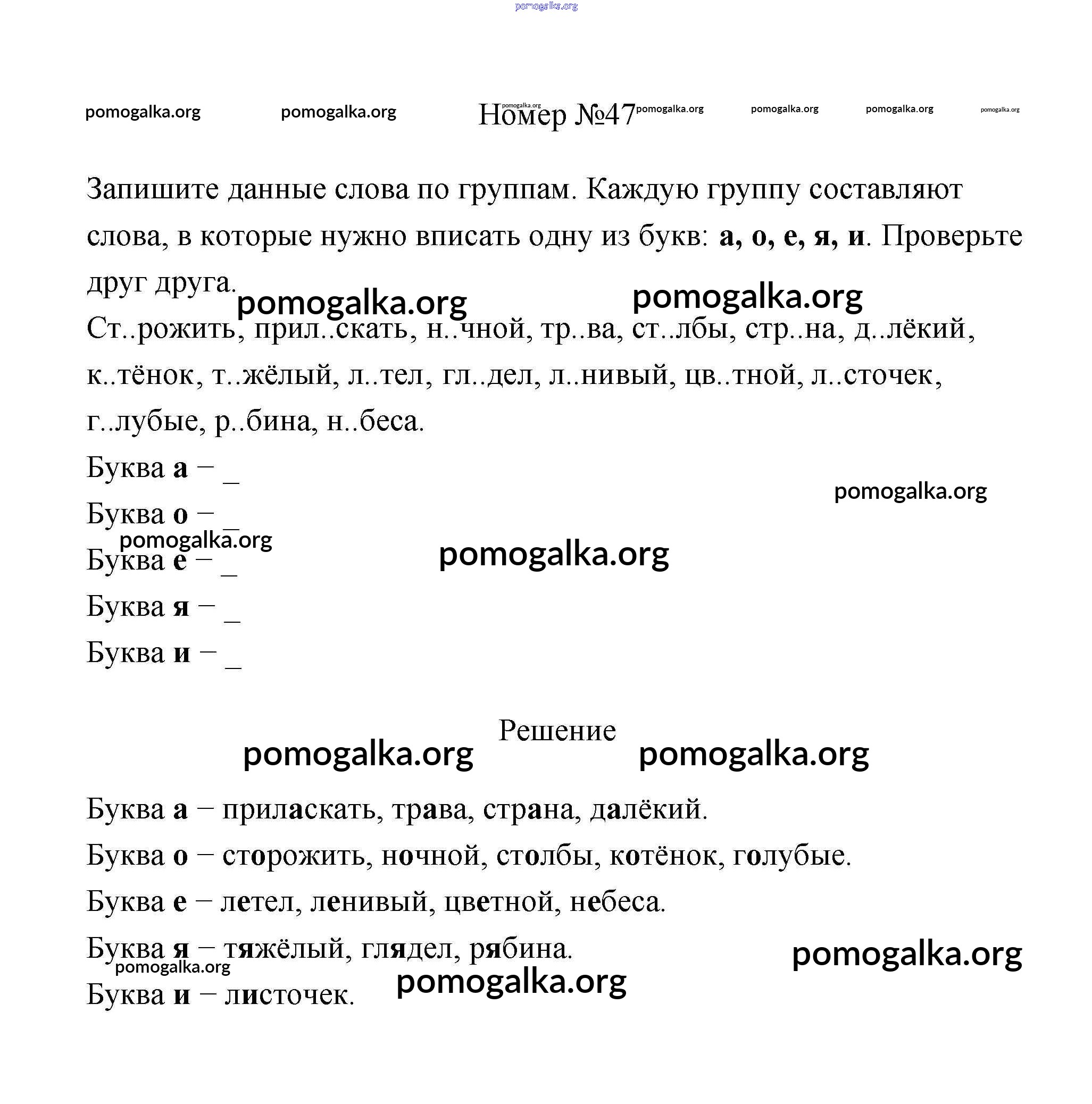 Готовые ответы - Русский язык 3 класс рабочая тетрадь Климанова Л.Ф. - часть 1. задание № 47