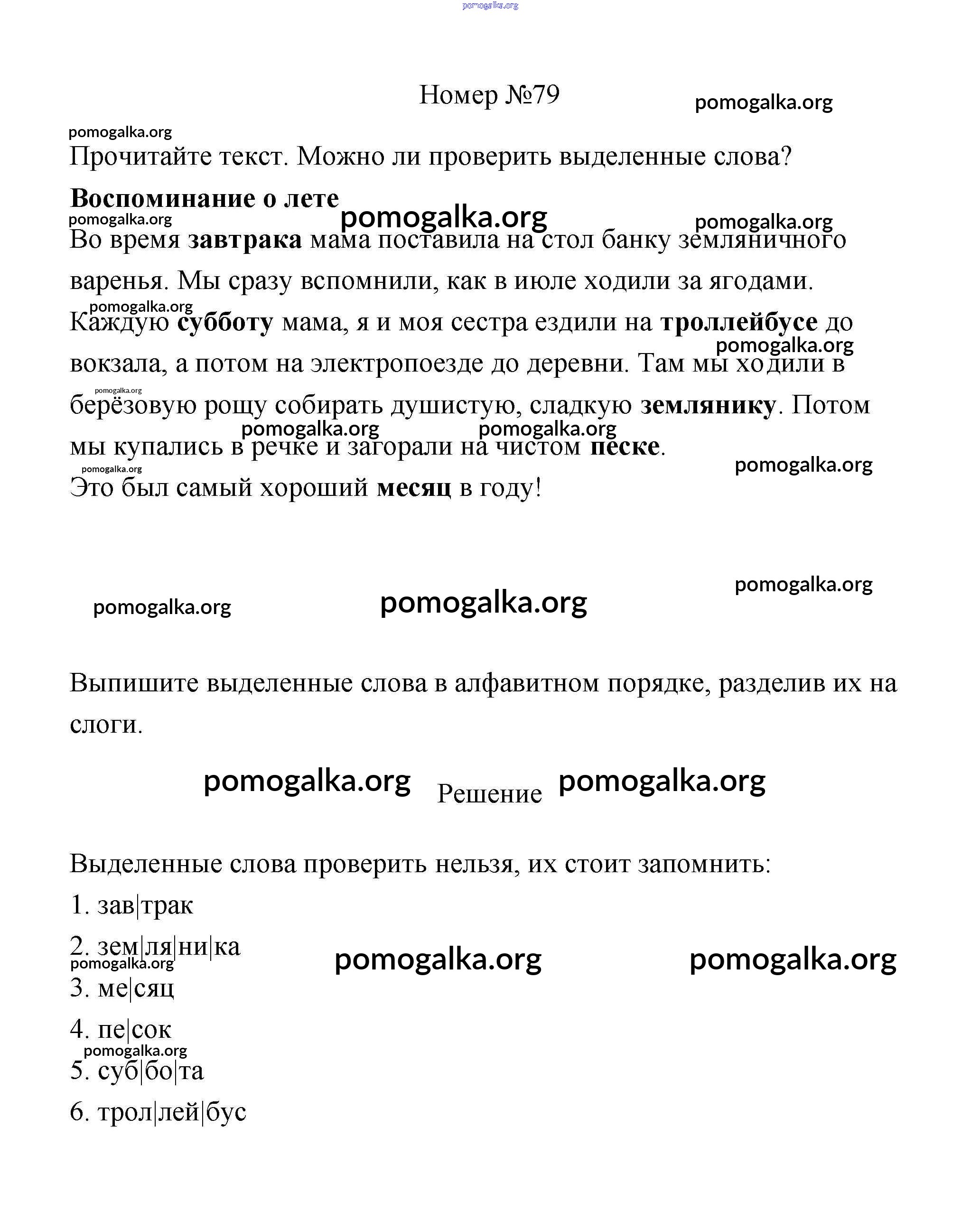 Готовые ответы - Русский язык 3 класс рабочая тетрадь Климанова Л.Ф. - часть 1. задание № 79