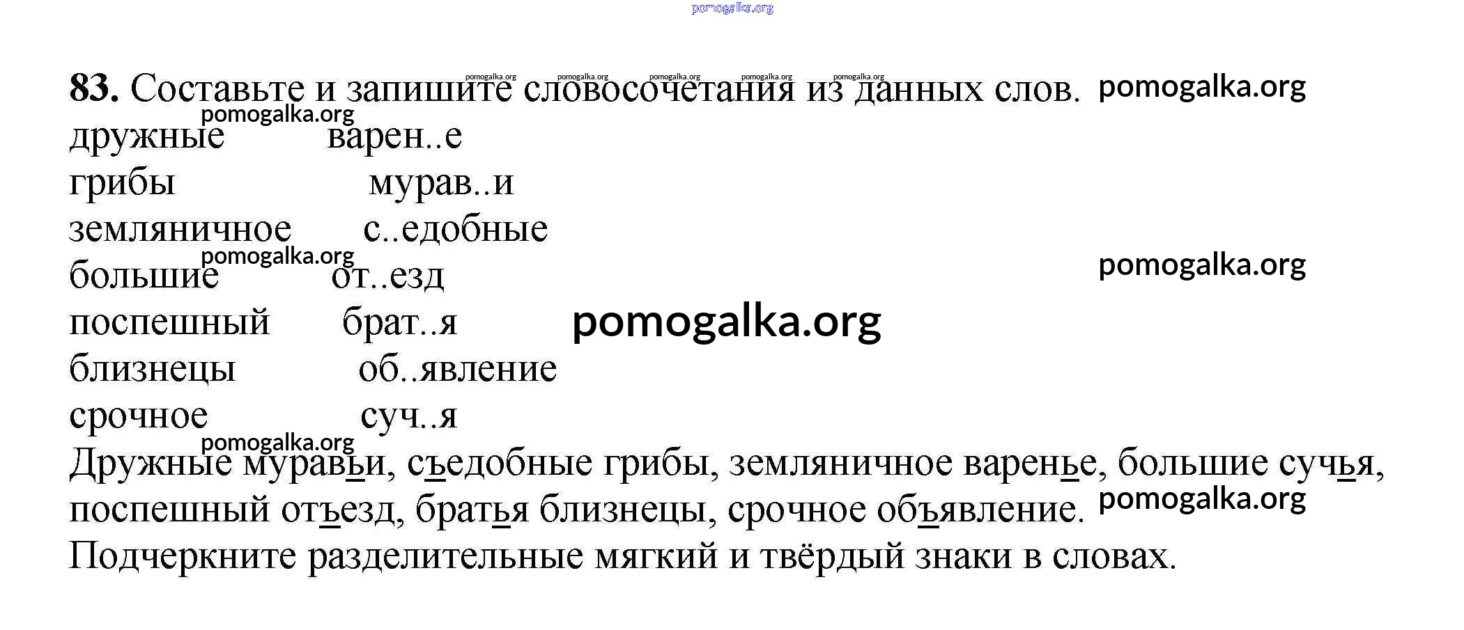 Готовые ответы - Русский язык 3 класс рабочая тетрадь Климанова Л.Ф. - часть 1. задание № 83