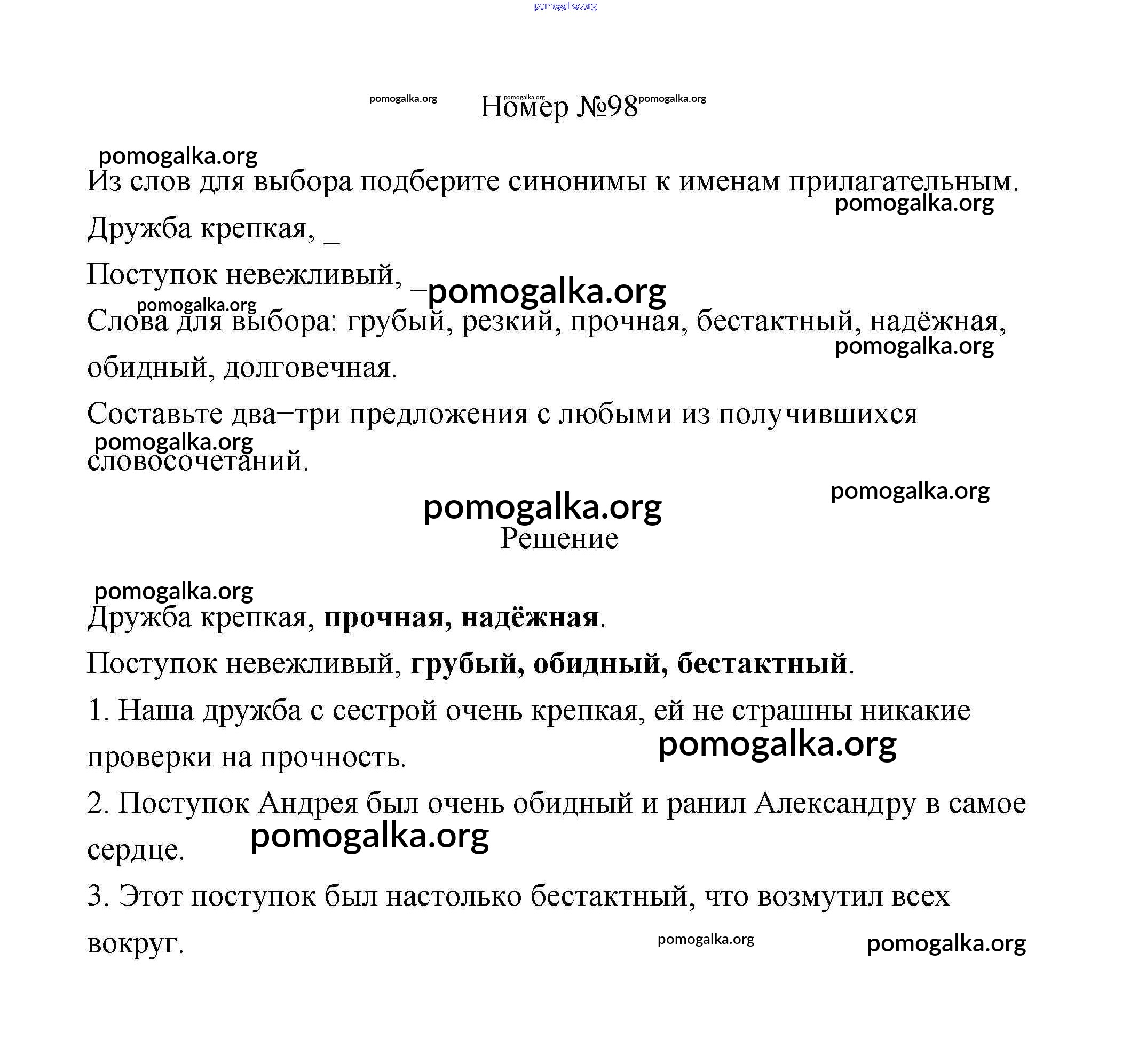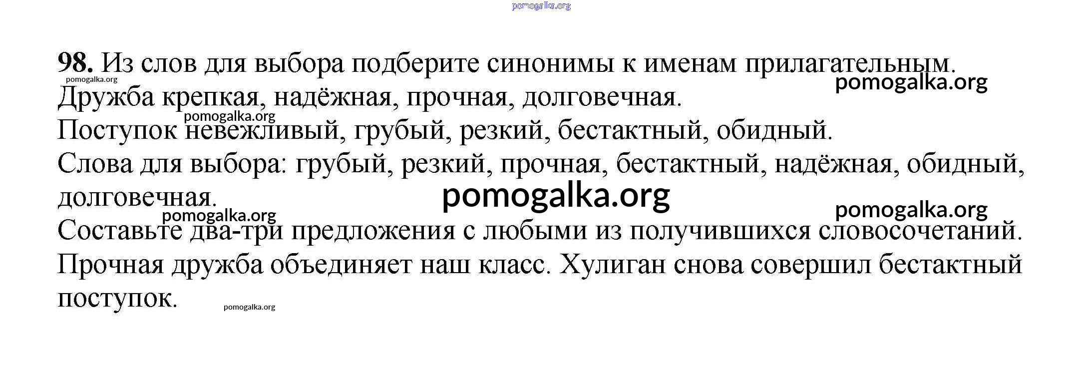 Готовые ответы - Русский язык 3 класс рабочая тетрадь Климанова Л.Ф. - часть 1. задание № 98