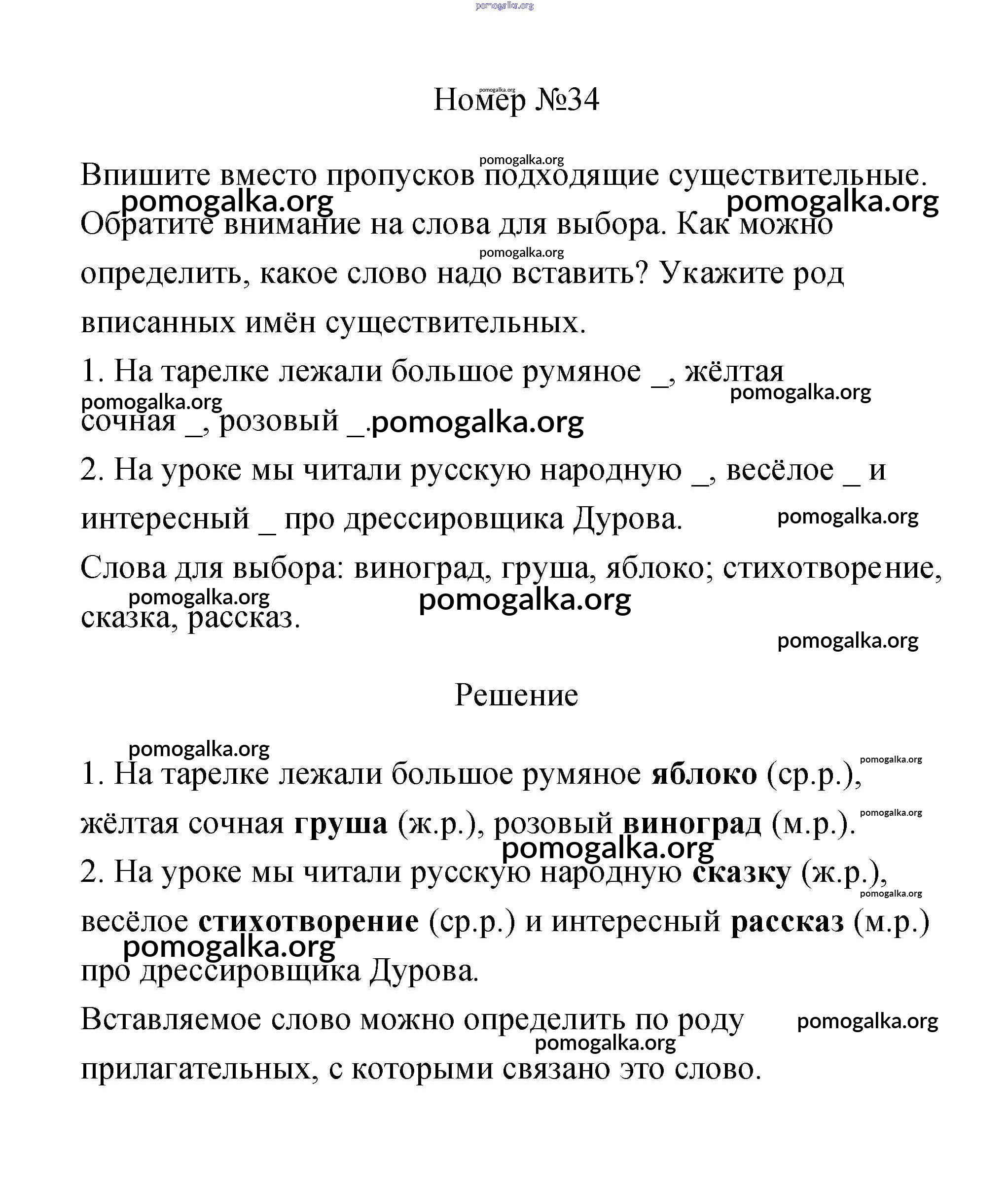 Готовые ответы - Русский язык 3 класс рабочая тетрадь Климанова Л.Ф. - часть 2. задание № 34