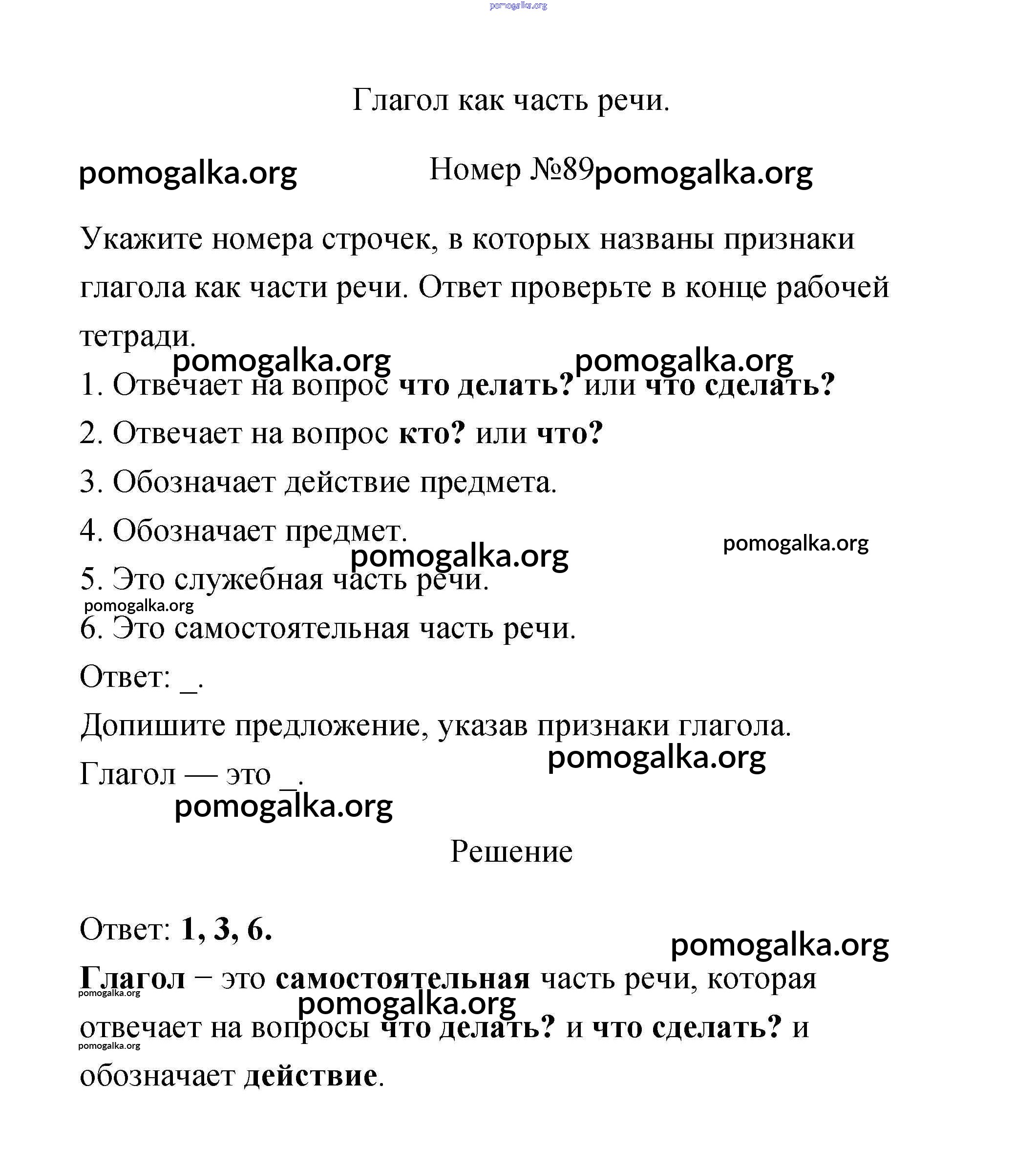 Готовые ответы - Русский язык 3 класс рабочая тетрадь Климанова Л.Ф. - часть 2. задание № 89
