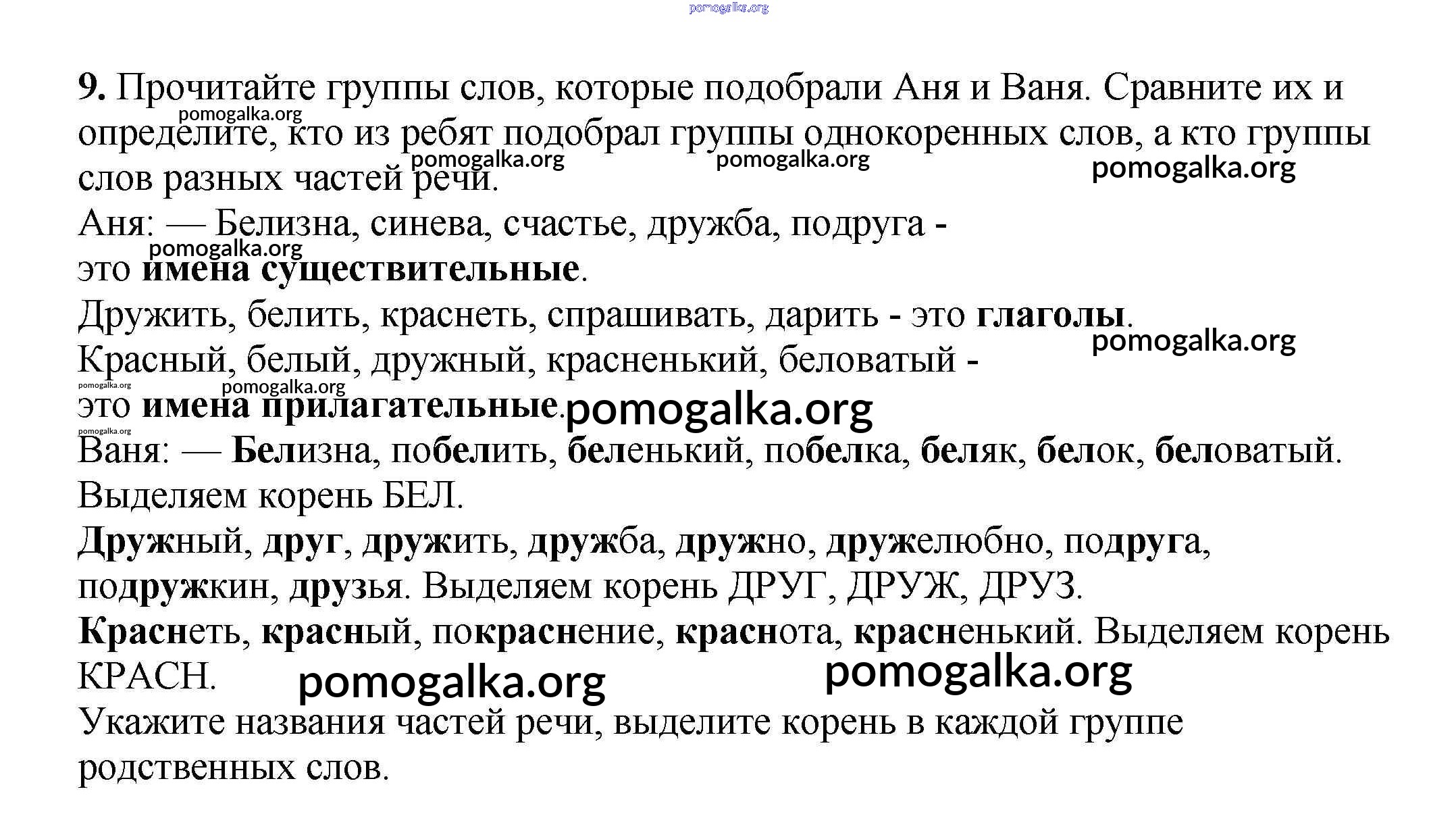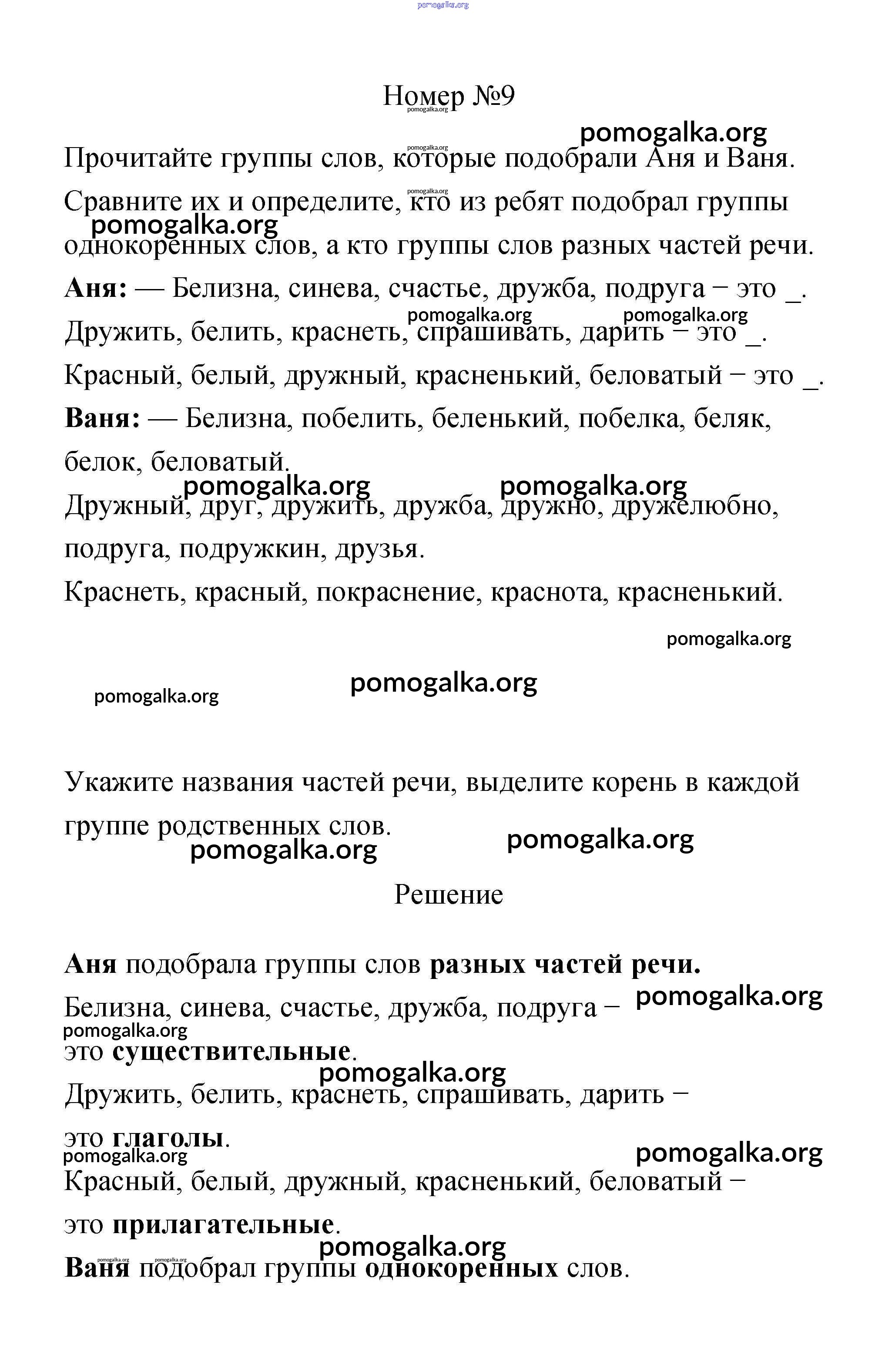 Готовые ответы - Русский язык 3 класс рабочая тетрадь Климанова Л.Ф. - часть 2. задание № 9