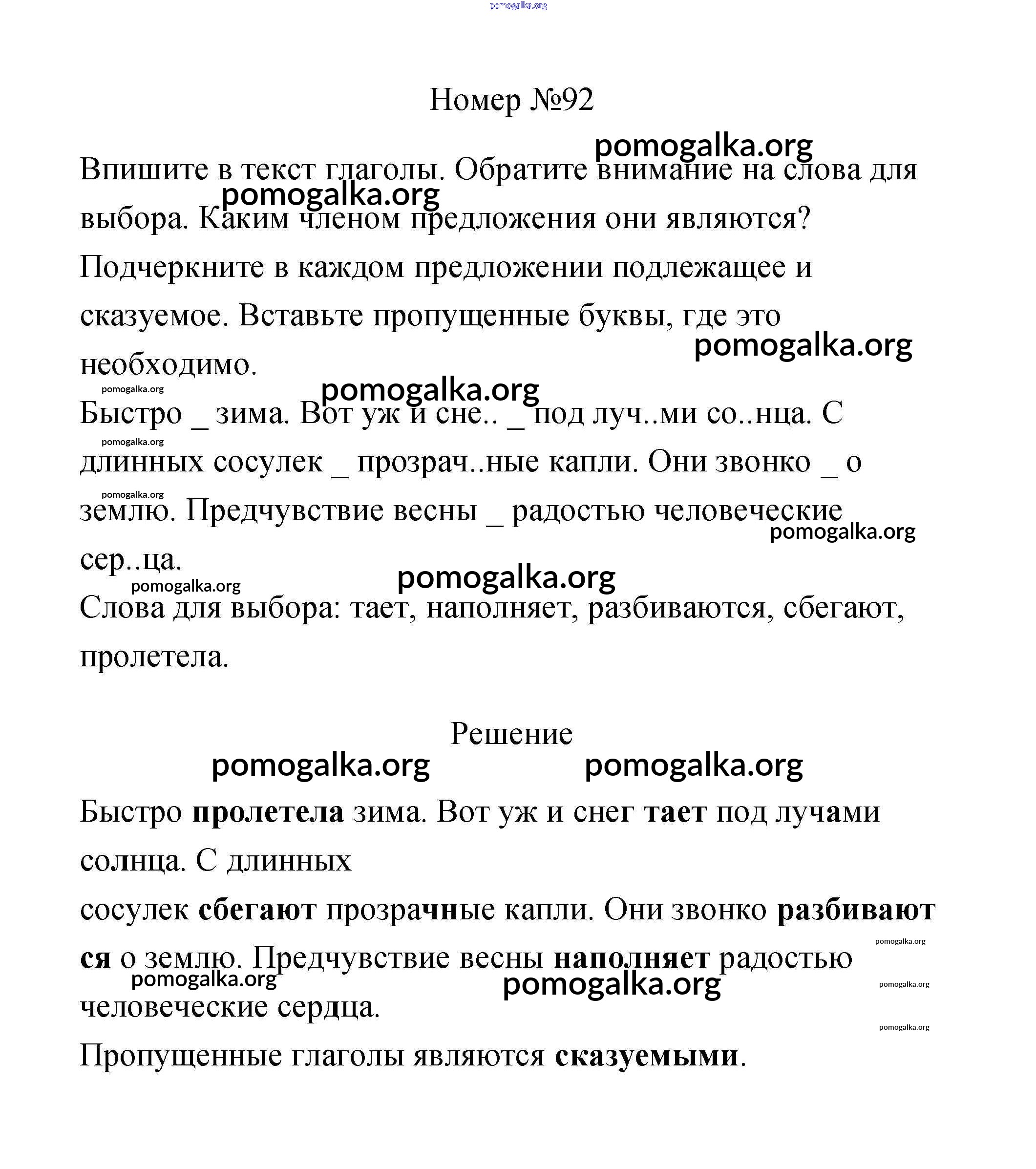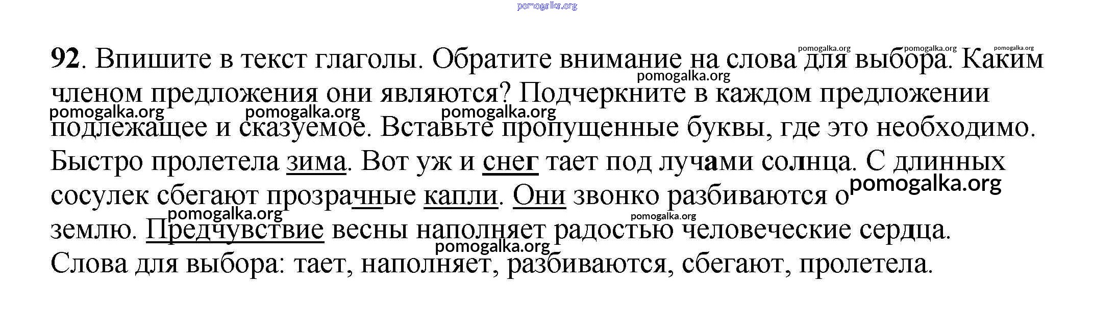 Готовые ответы - Русский язык 3 класс рабочая тетрадь Климанова Л.Ф. - часть 2. задание № 92