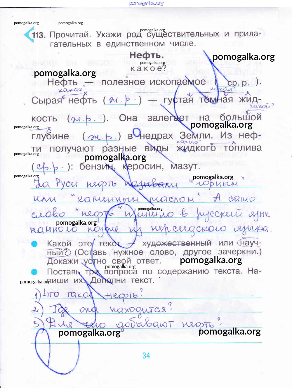 Готовые ответы - Русский язык 3 класс рабочая тетрадь Рамзаева Т.Г. - часть 2. страница 34
