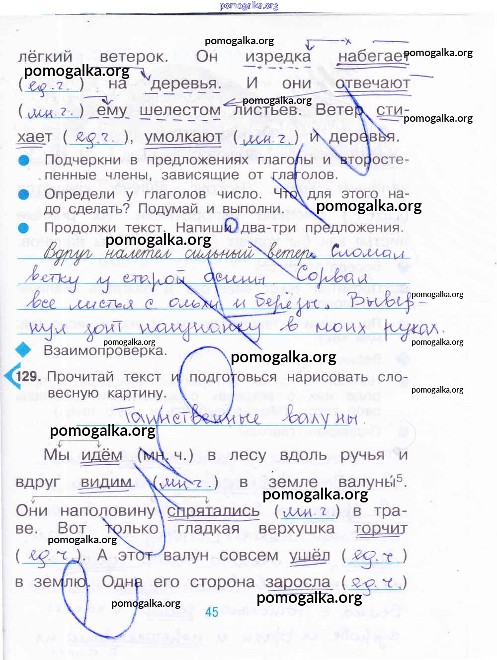 Готовые ответы - Русский язык 3 класс рабочая тетрадь Рамзаева Т.Г. - часть 2. страница 45