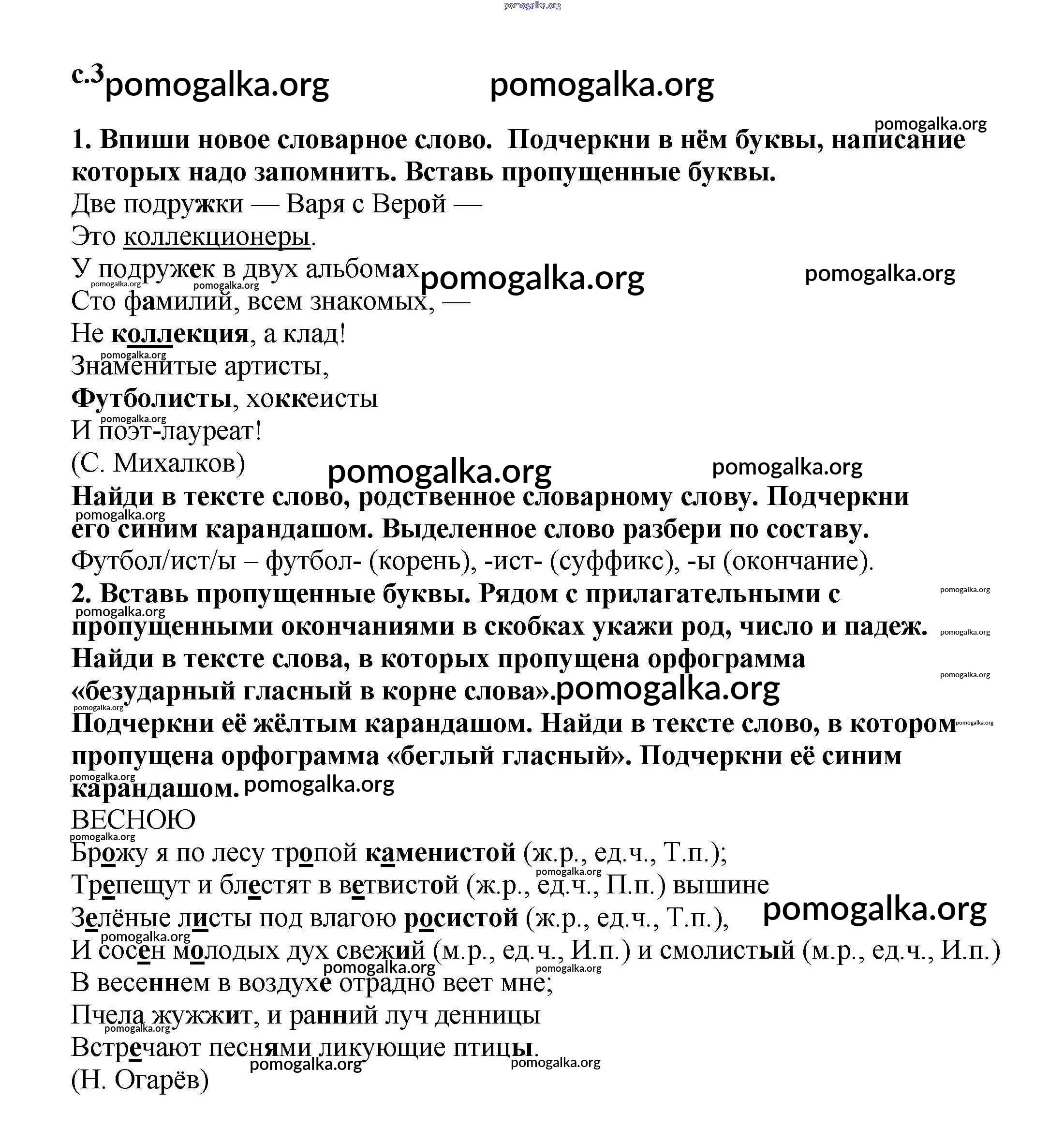 Готовые ответы - Русский язык 3 класс тетрадь для самостоятельных работ Байкова Т.А. - часть 1 3