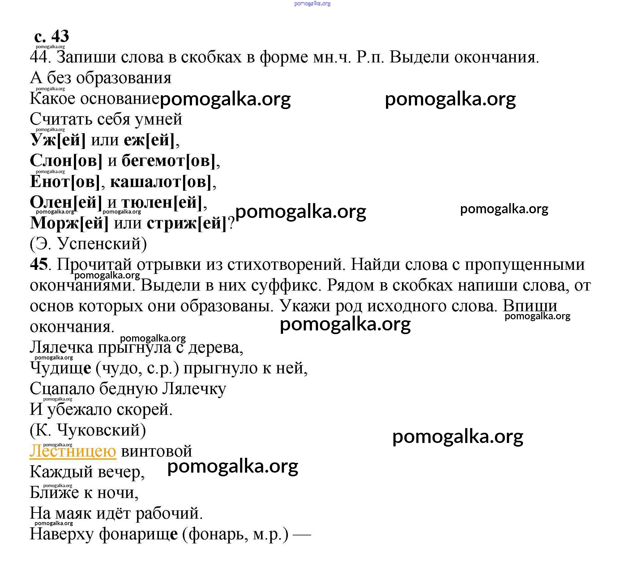 Готовые ответы - Русский язык 3 класс тетрадь для самостоятельных работ Байкова Т.А. - часть 2 43
