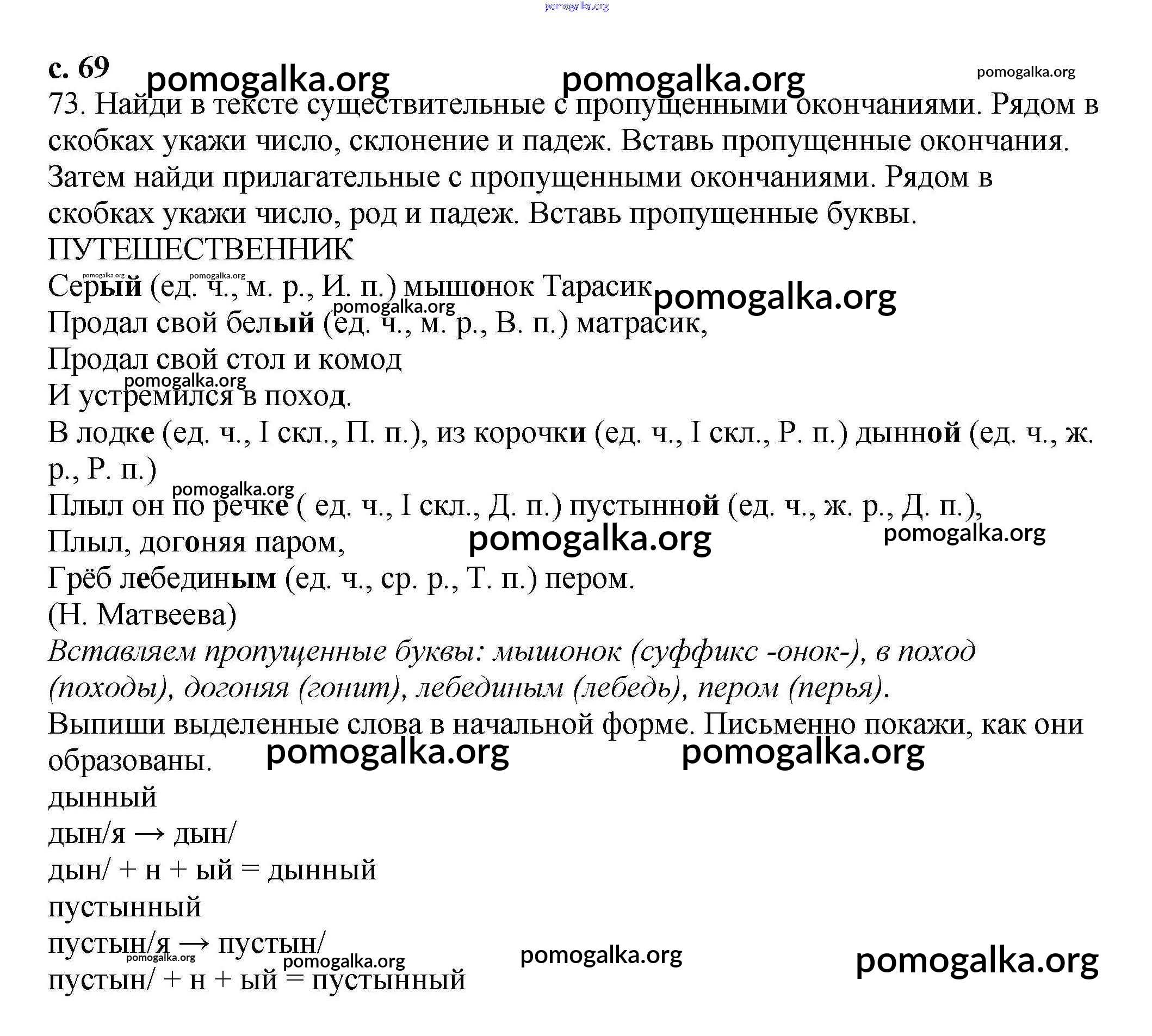 Готовые ответы - Русский язык 3 класс тетрадь для самостоятельных работ Байкова Т.А. - часть 2 69