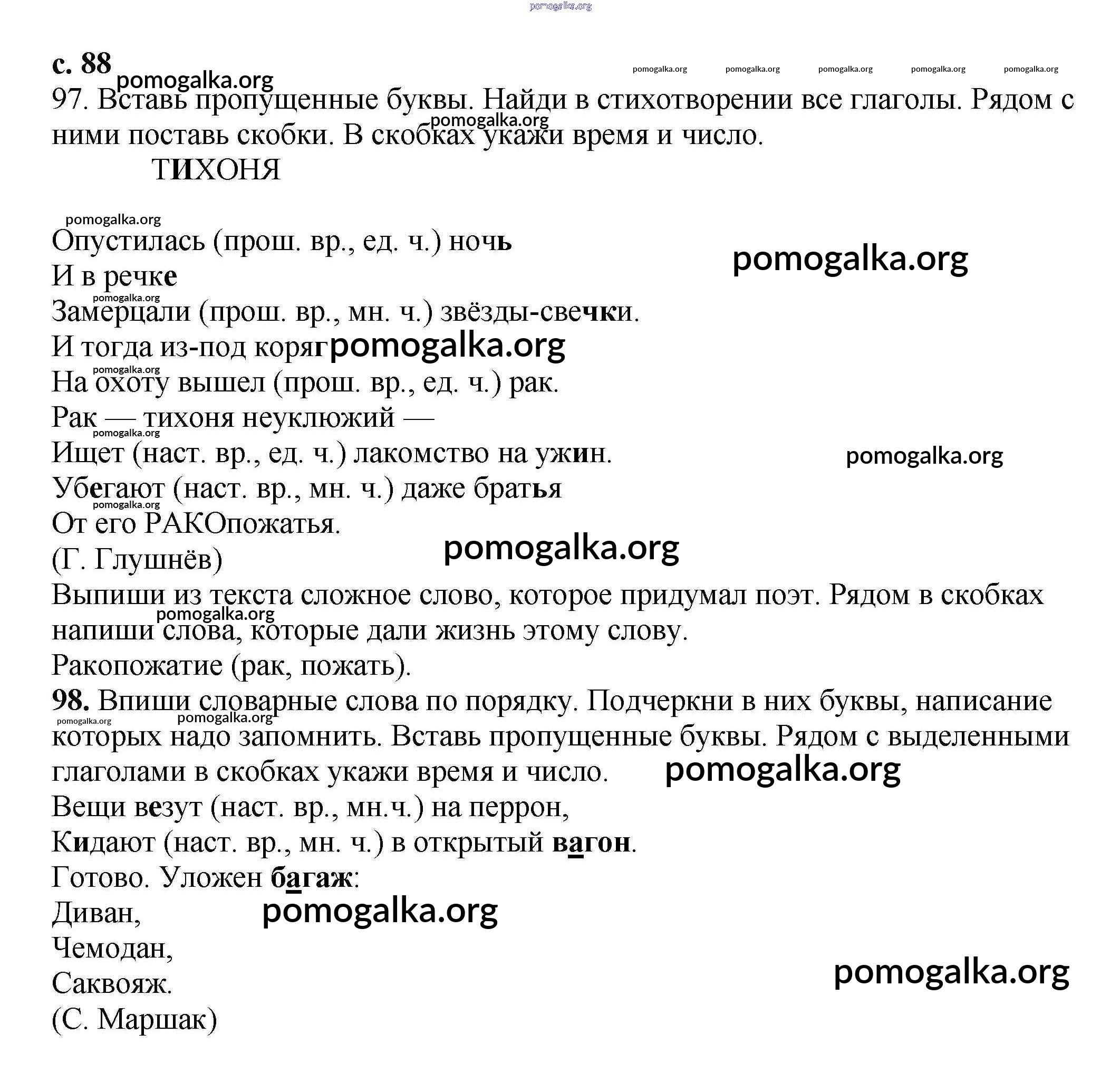Готовые ответы - Русский язык 3 класс тетрадь для самостоятельных работ Байкова Т.А. - часть 2 88