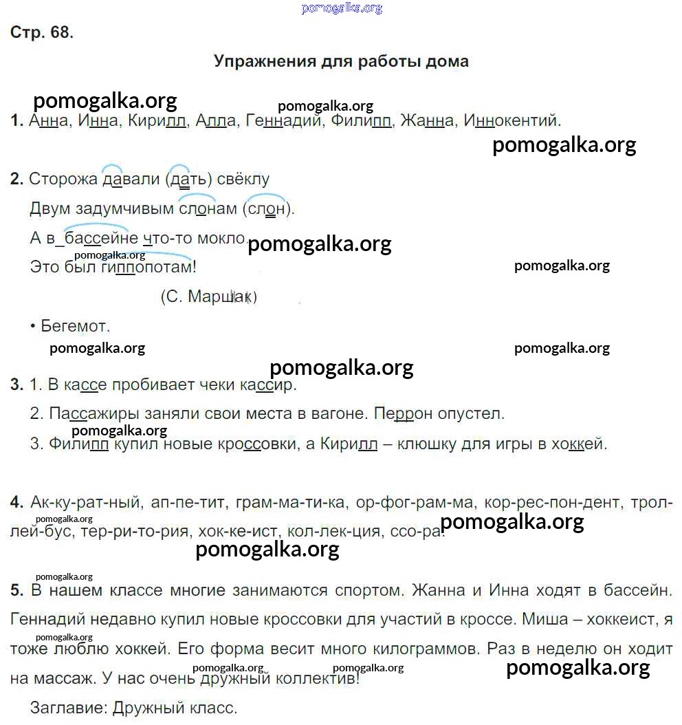 Готовые ответы - Русский язык 3 класс Бунеев Р.Н. - упражнения для работы дома часть 1 стр.68