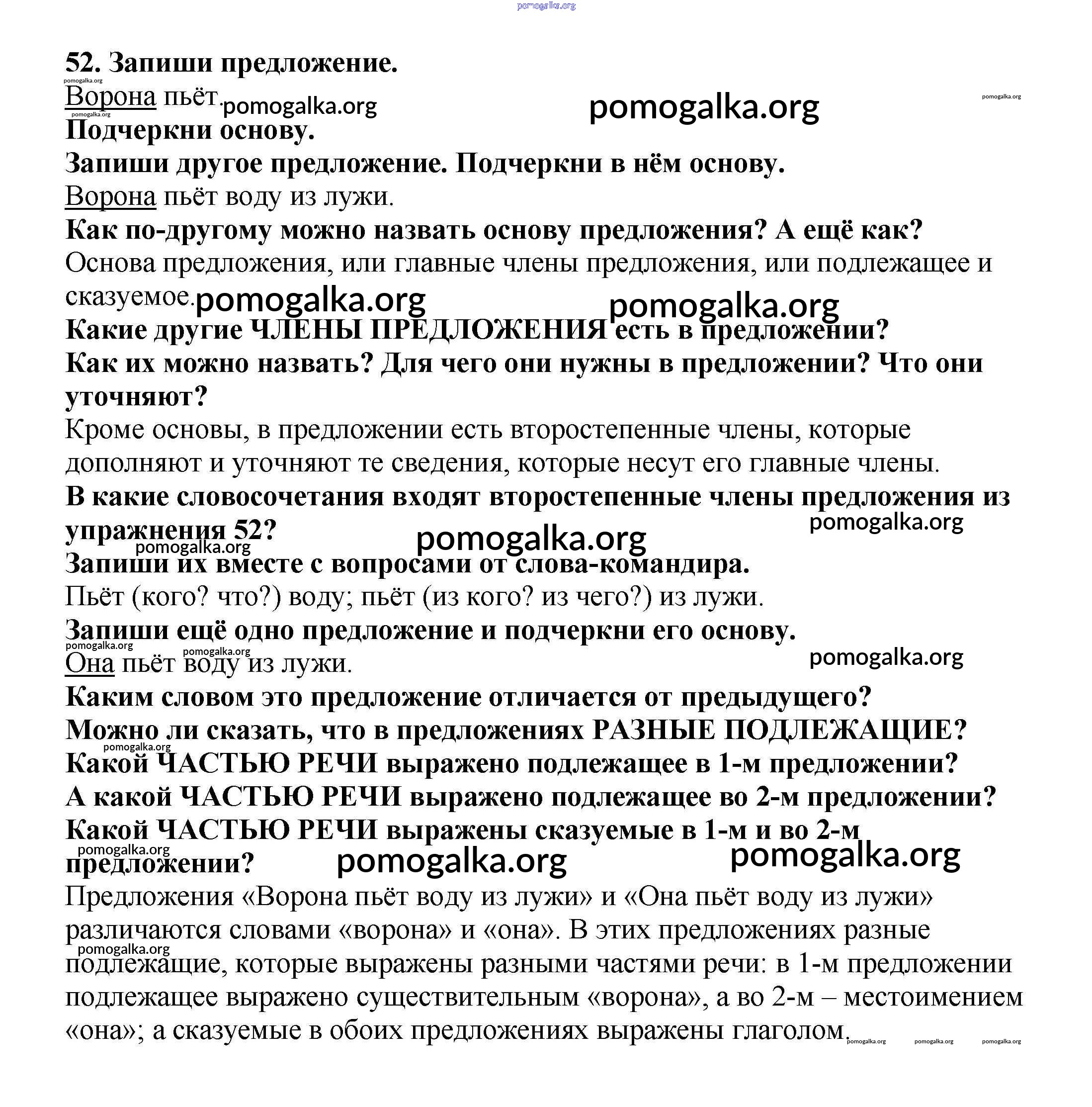 Готовые ответы - Русский язык 3 класс Каленчук М.Л. - упражнение часть 1 52
