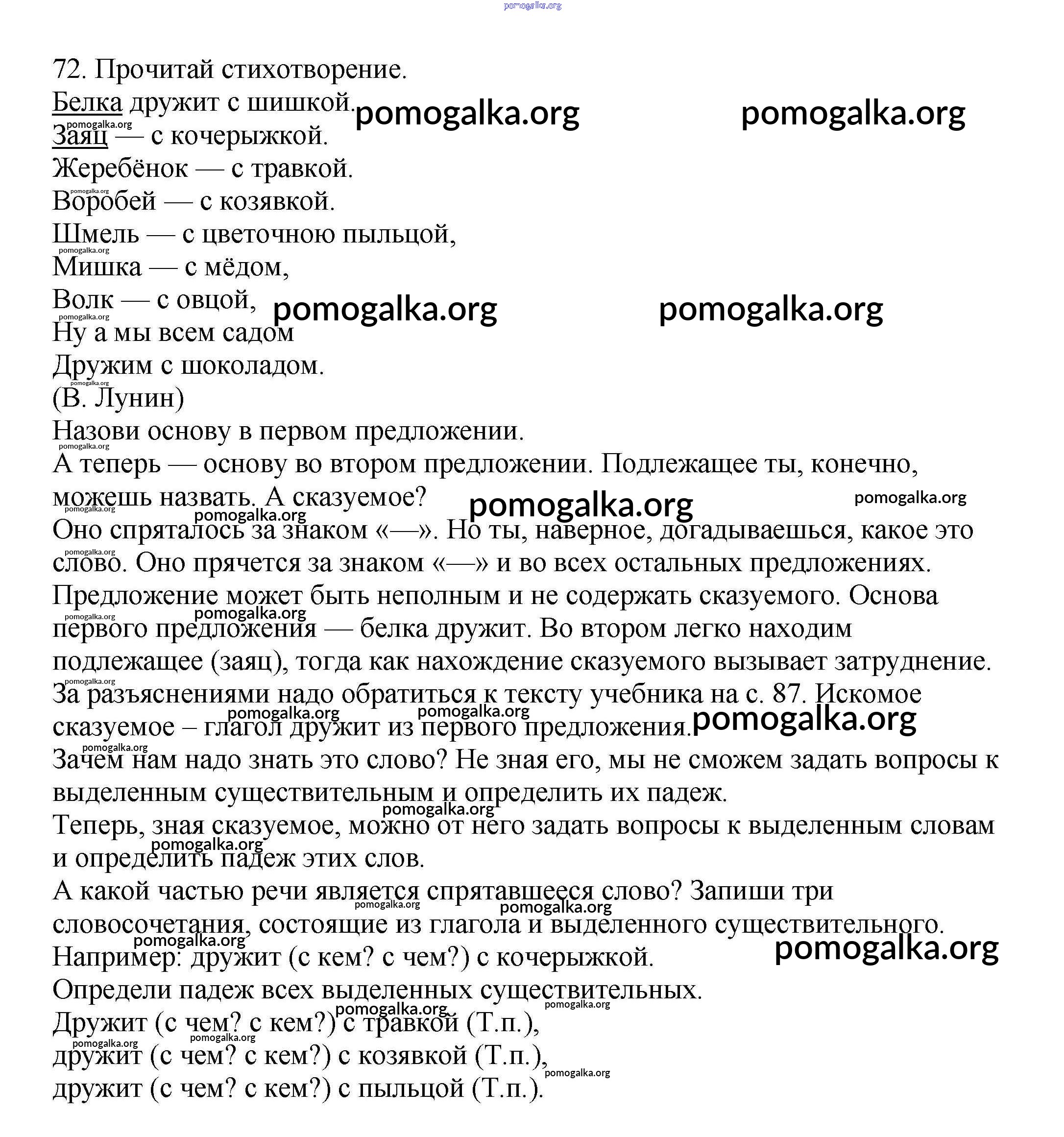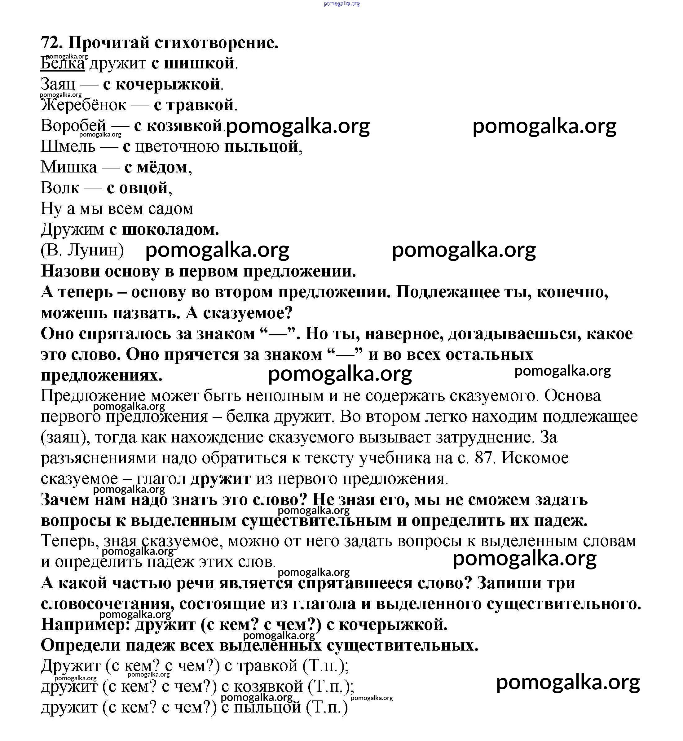 Готовые ответы - Русский язык 3 класс Каленчук М.Л. - упражнение часть 1 72