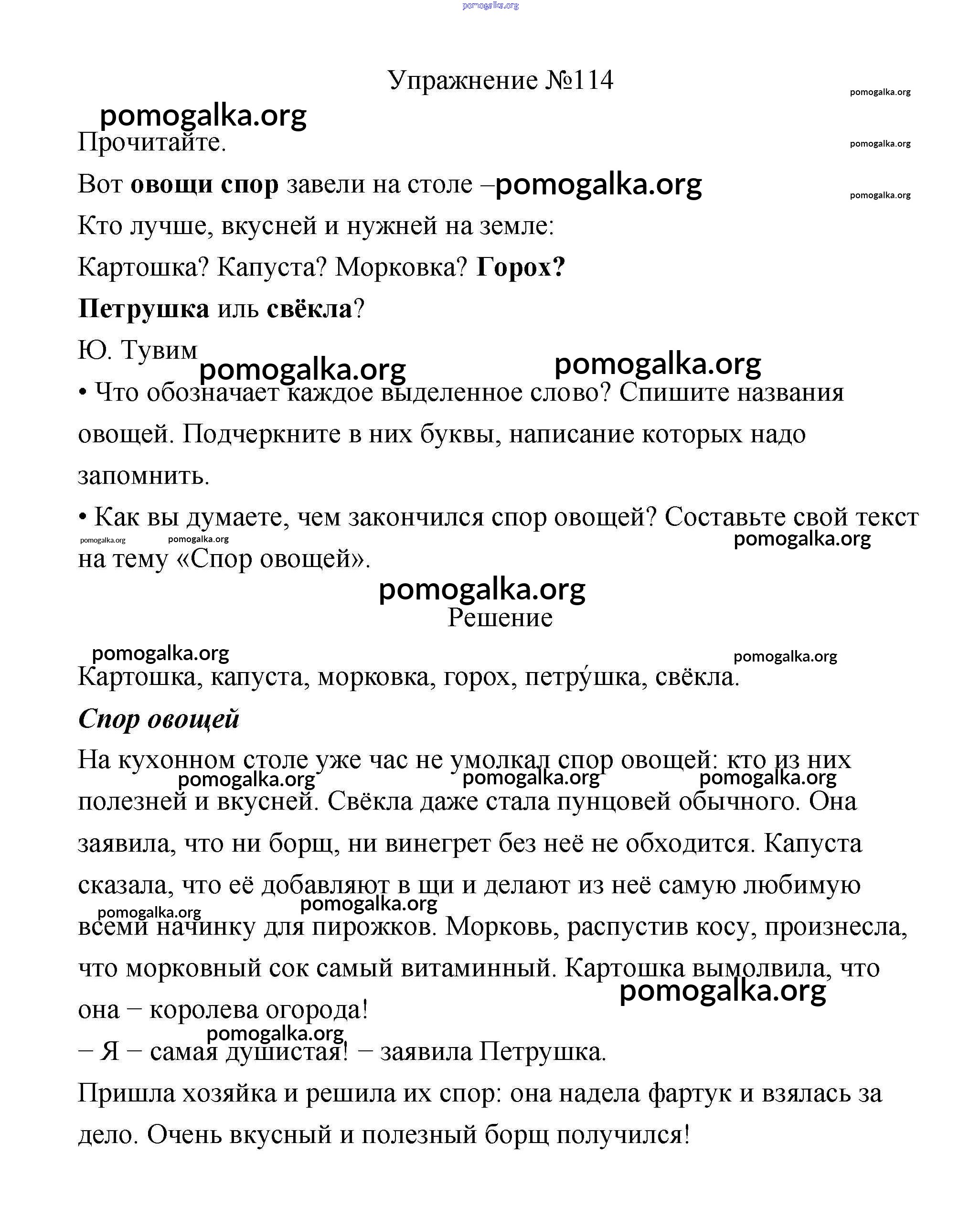 Готовые ответы - Русский язык 3 класс Канакина В.П. - упражнение № часть 1 114