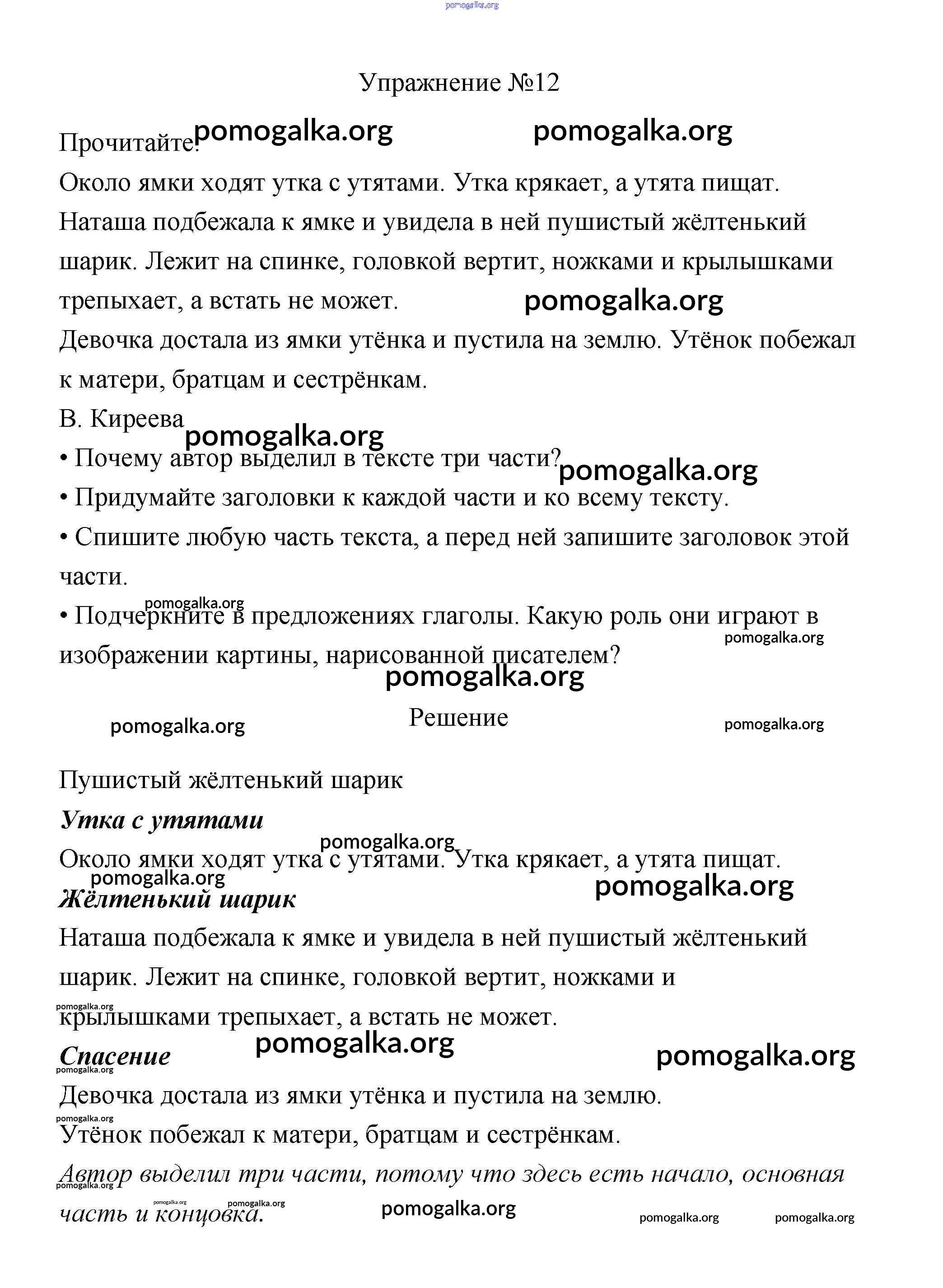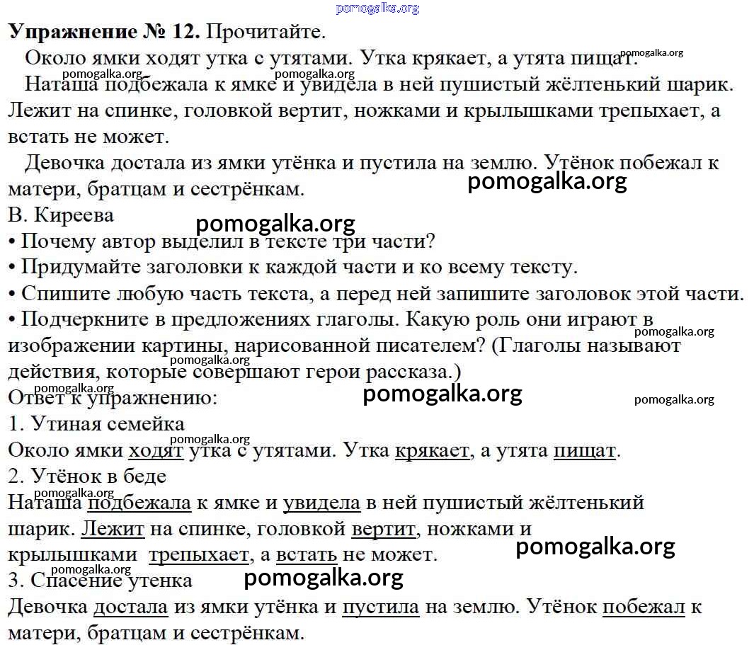 Готовые ответы - Русский язык 3 класс Канакина В.П. - упражнение № часть 1 12