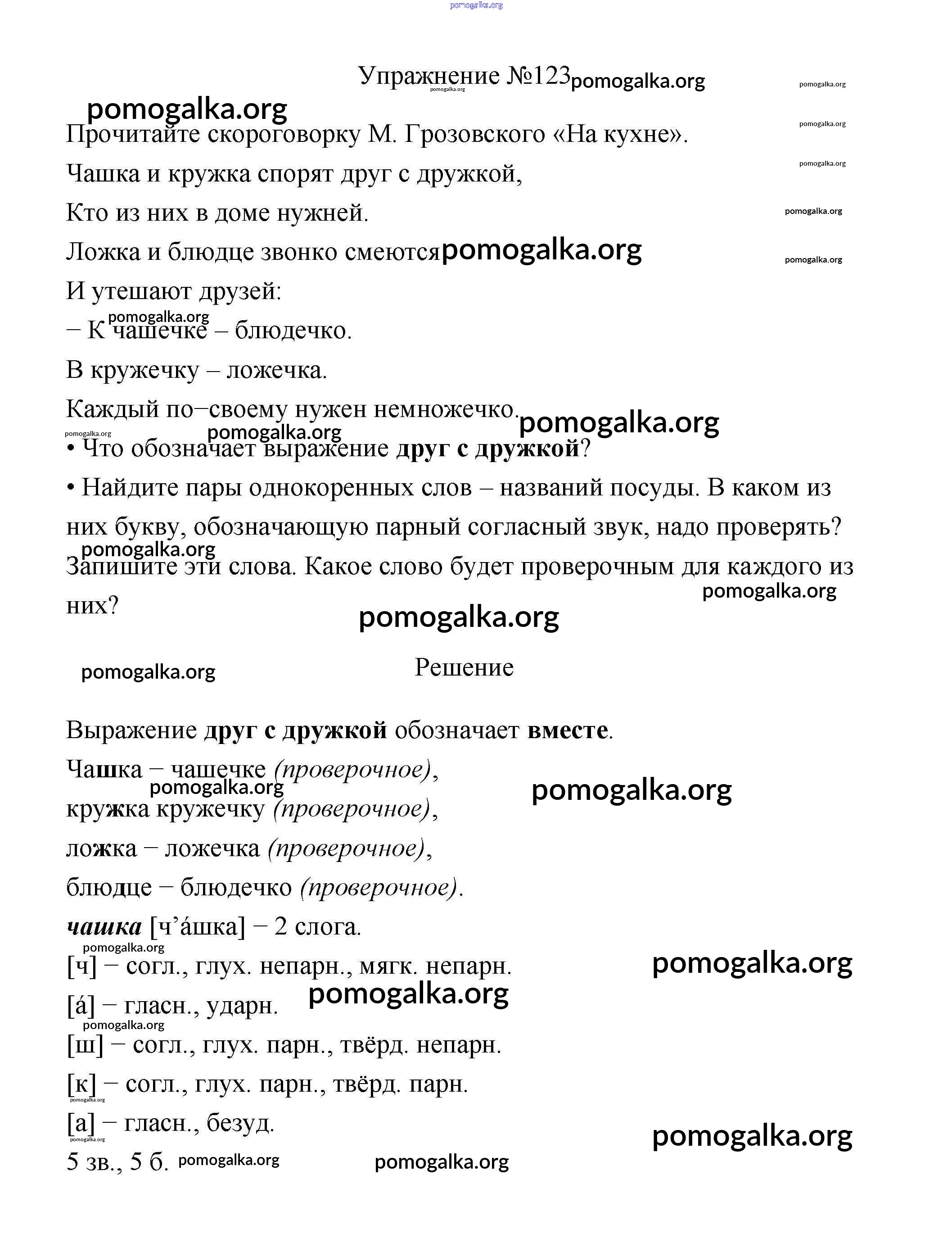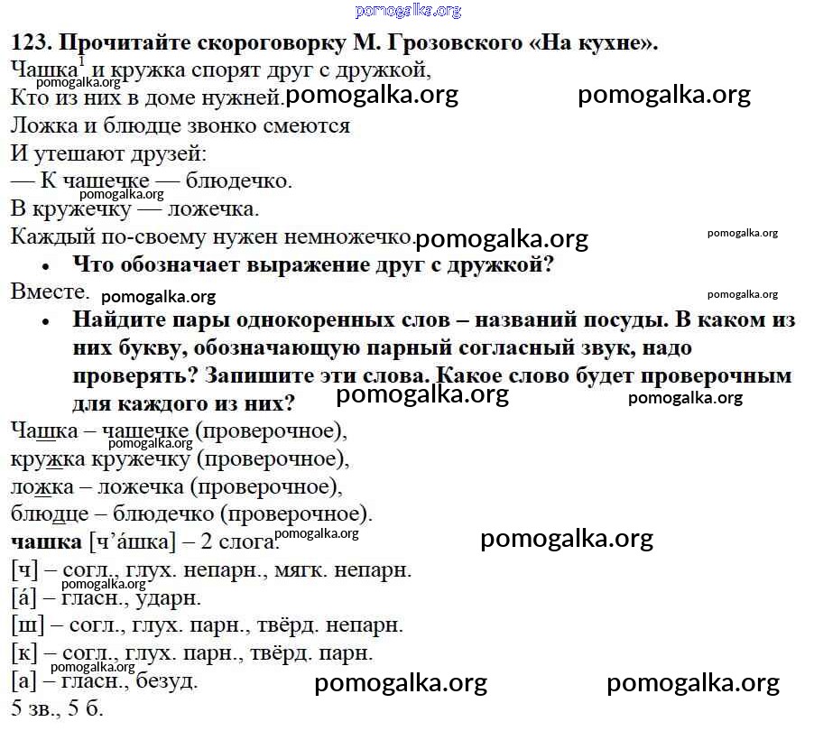 Готовые ответы - Русский язык 3 класс Канакина В.П. - упражнение № часть 1 123