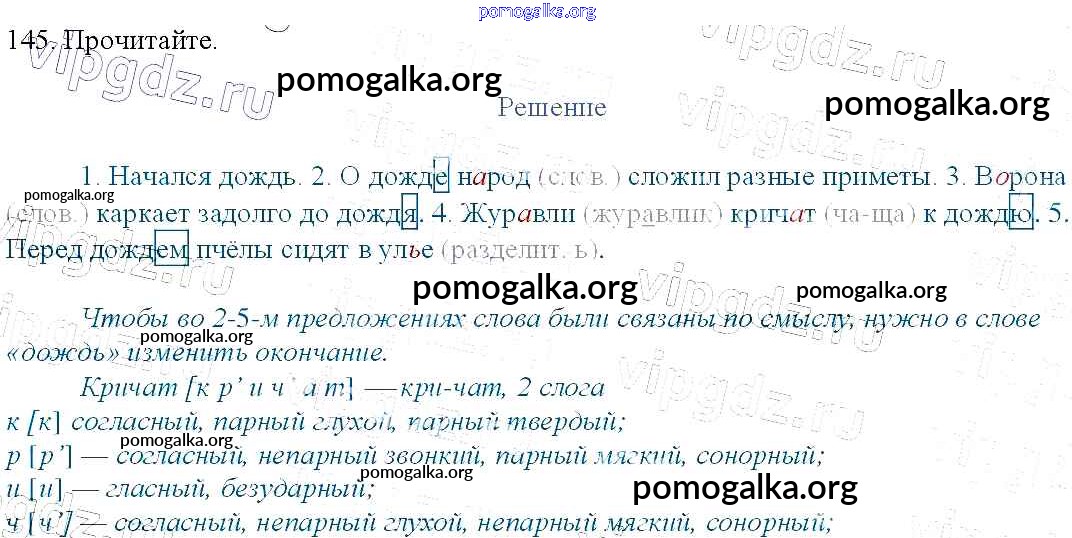 Готовые ответы - Русский язык 3 класс Канакина В.П. - упражнение № часть 1 145