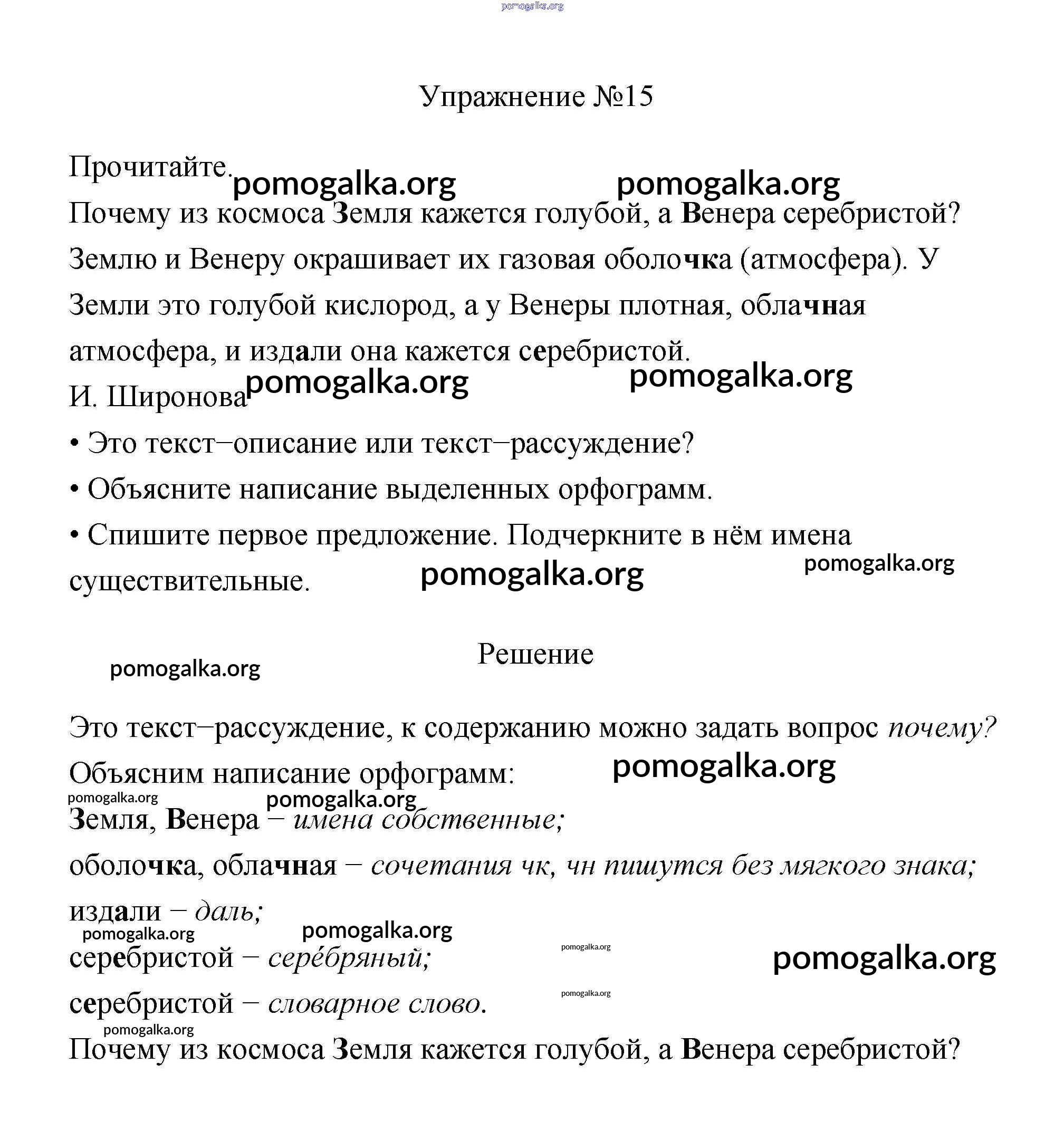 Готовые ответы - Русский язык 3 класс Канакина В.П. - упражнение № часть 1 15