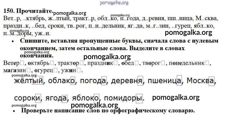 Готовые ответы - Русский язык 3 класс Канакина В.П. - упражнение № часть 1 150