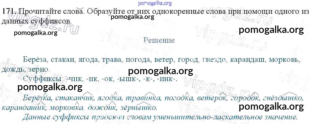 Готовые ответы - Русский язык 3 класс Канакина В.П. - упражнение № часть 1 171