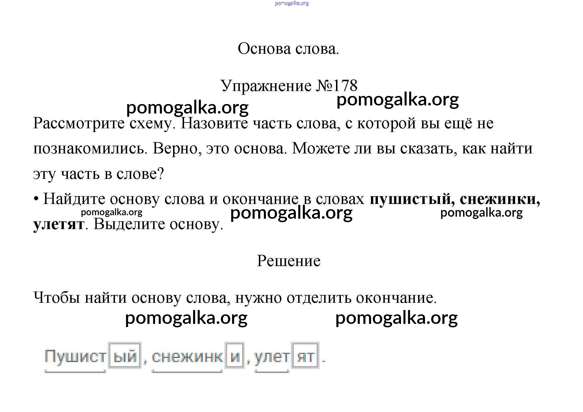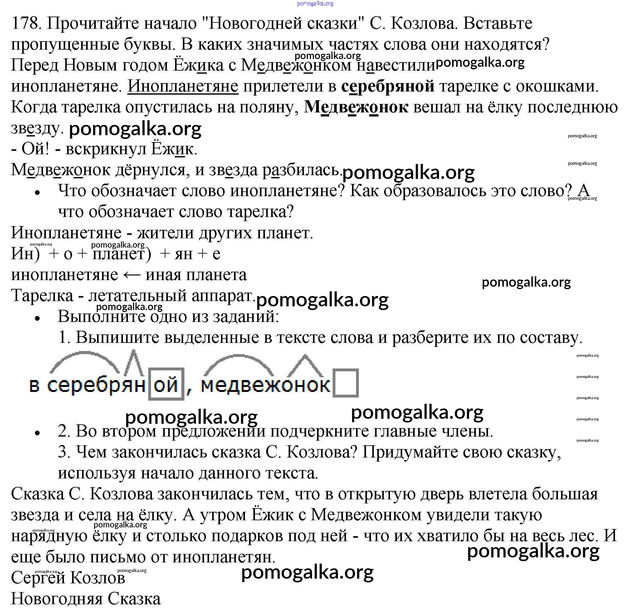 Готовые ответы - Русский язык 3 класс Канакина В.П. - упражнение № часть 1 178