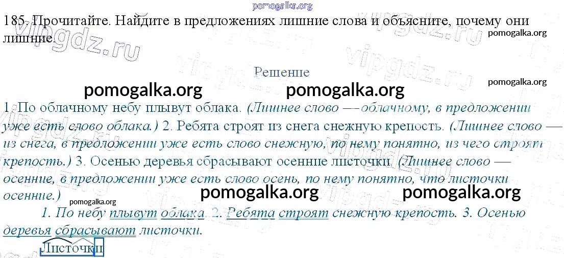 Готовые ответы - Русский язык 3 класс Канакина В.П. - упражнение № часть 1 185