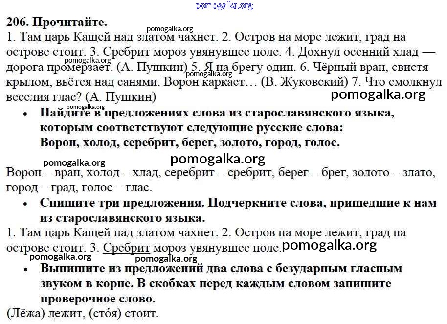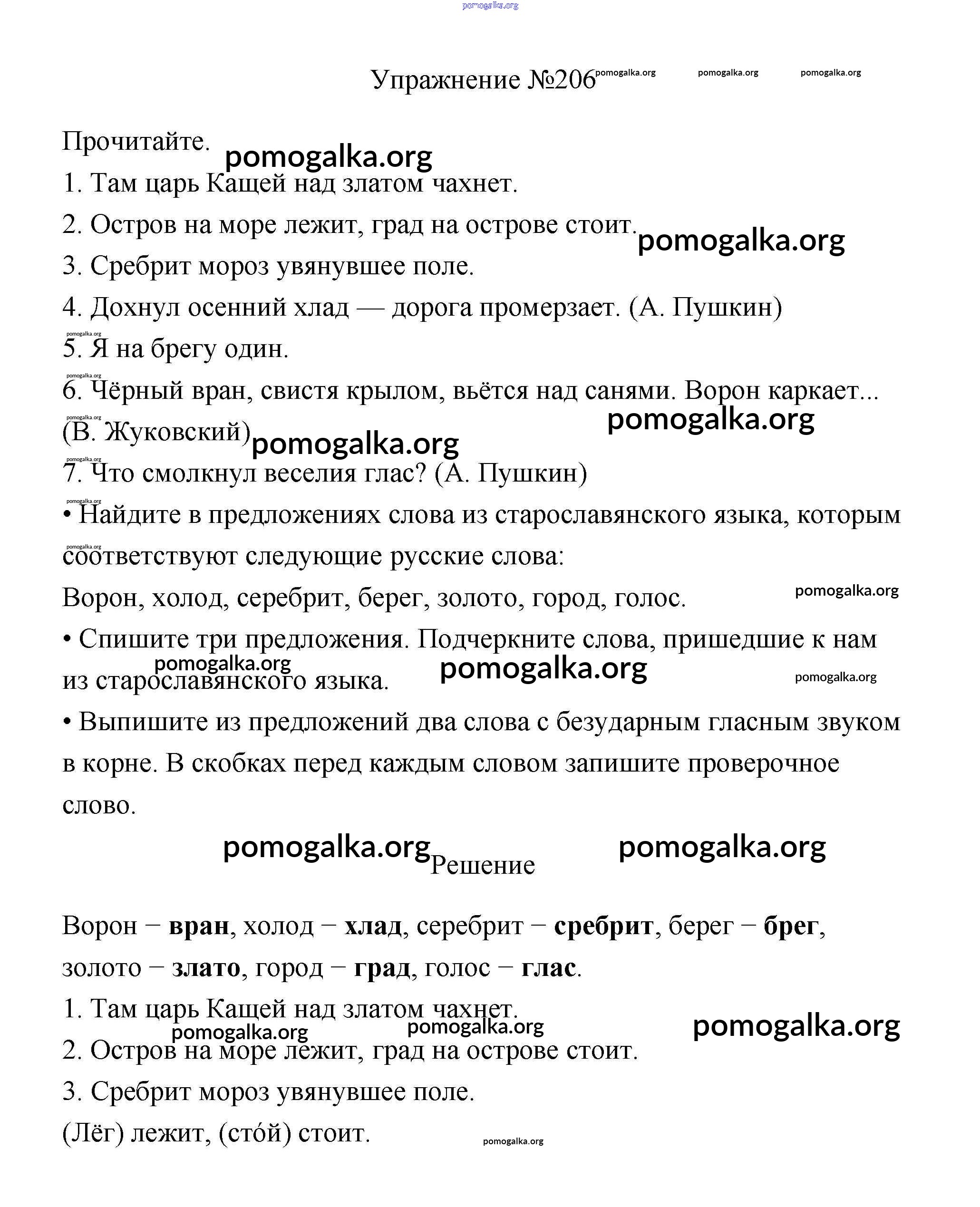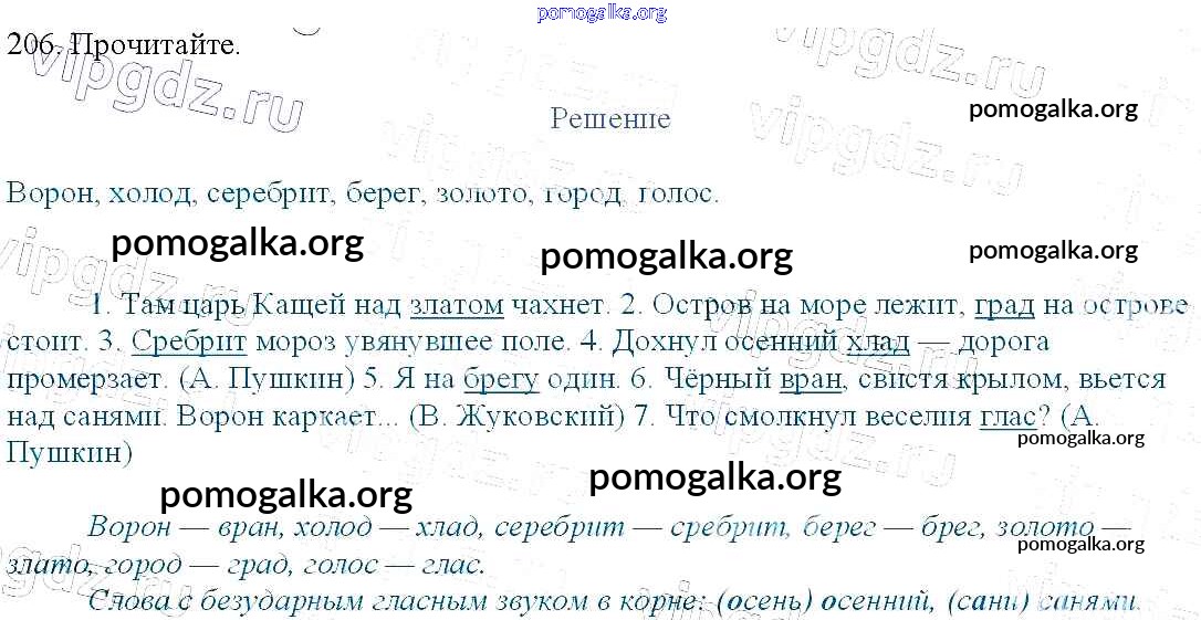 Готовые ответы - Русский язык 3 класс Канакина В.П. - упражнение № часть 1 206