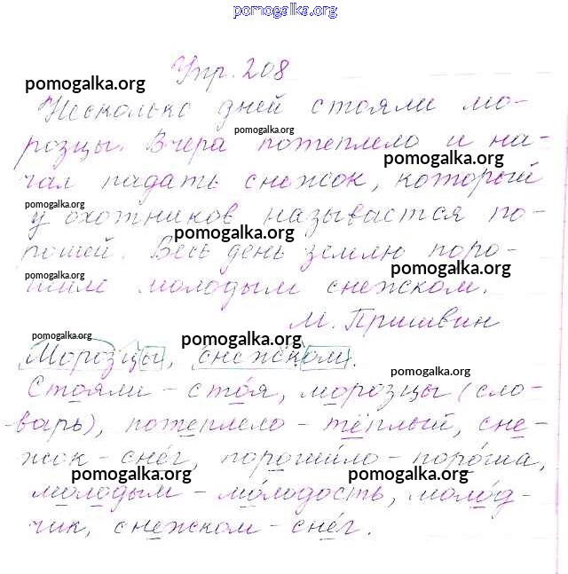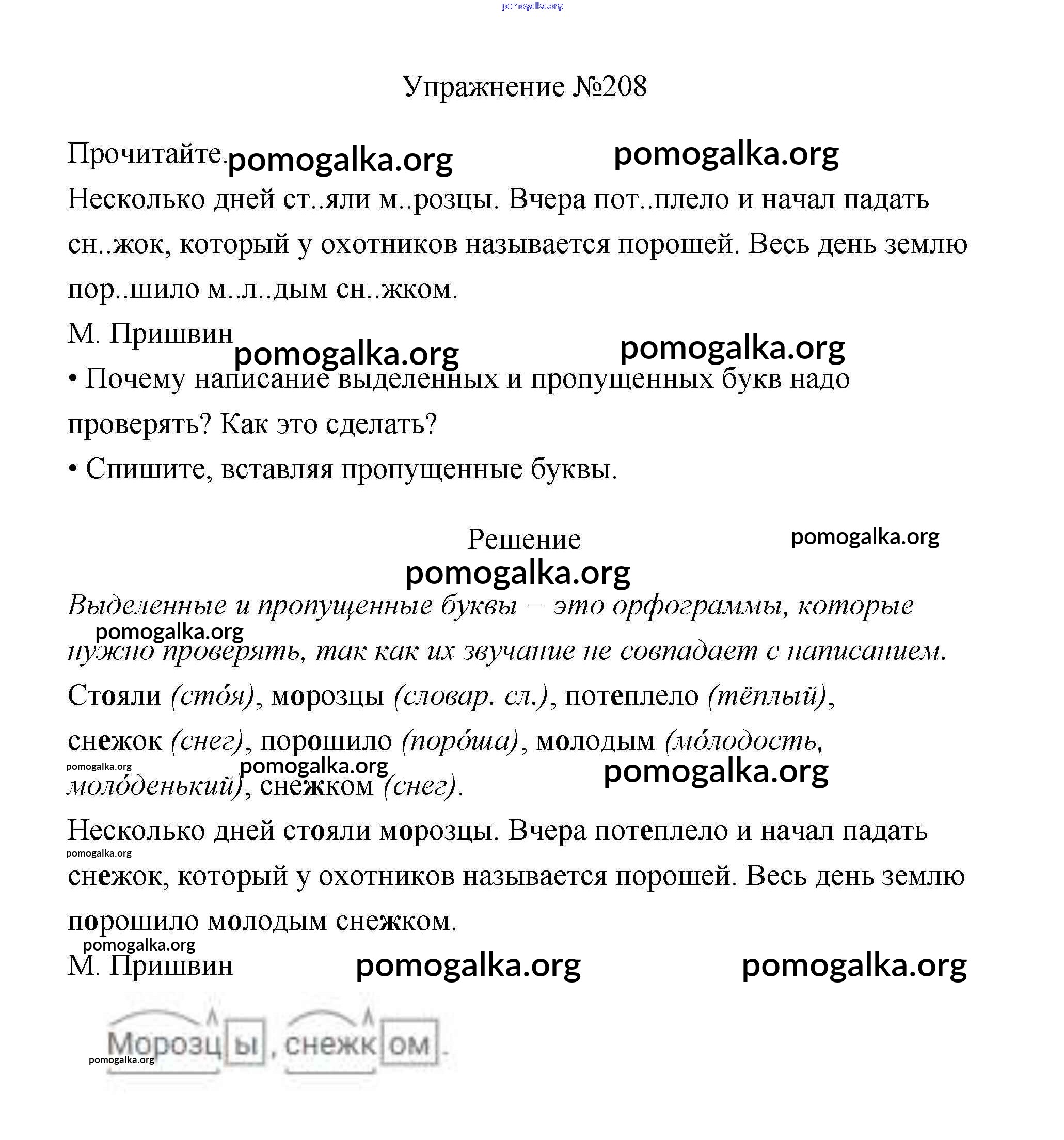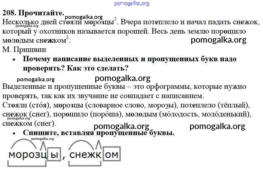 Готовые ответы - Русский язык 3 класс Канакина В.П. - упражнение № часть 1 208
