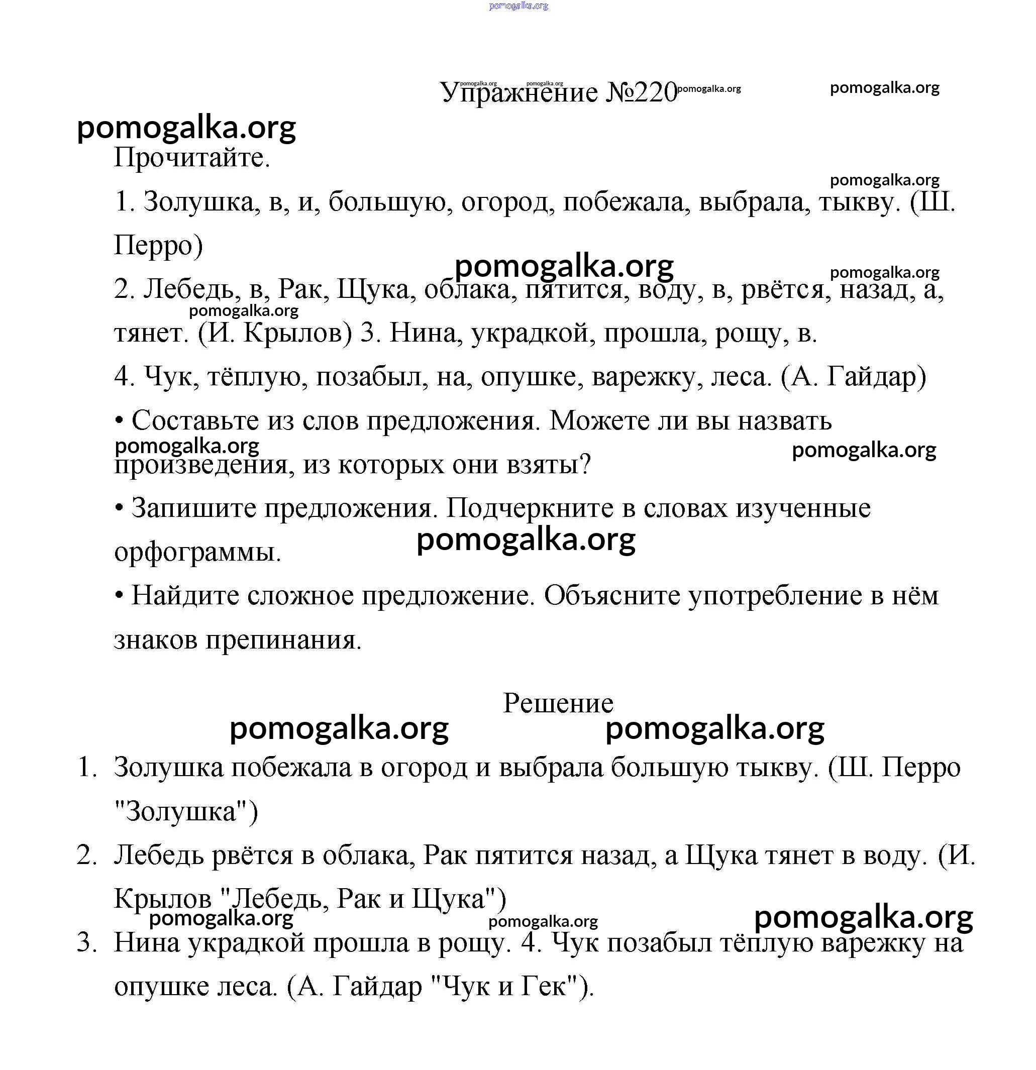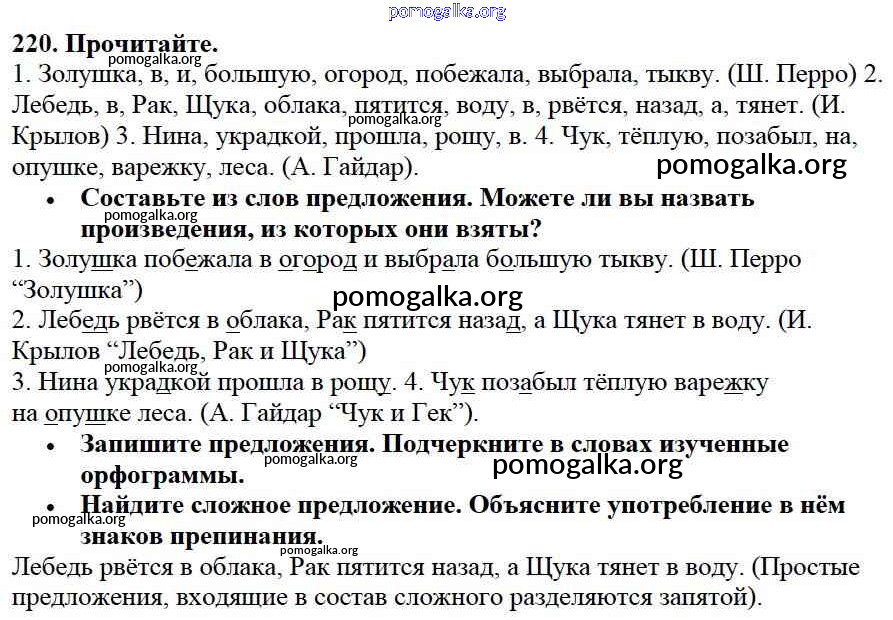 Готовые ответы - Русский язык 3 класс Канакина В.П. - упражнение № часть 1 220