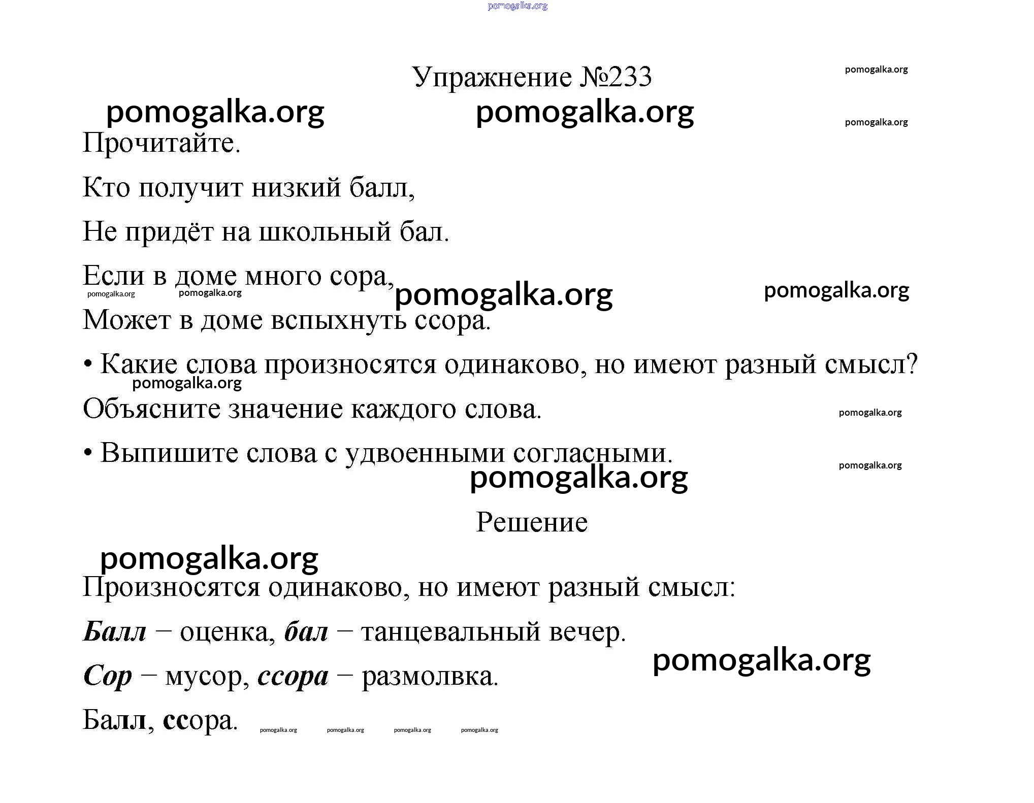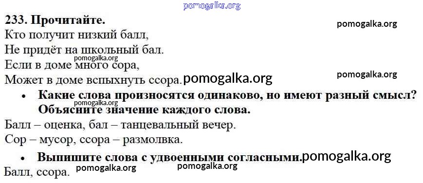 Готовые ответы - Русский язык 3 класс Канакина В.П. - упражнение № часть 1 233