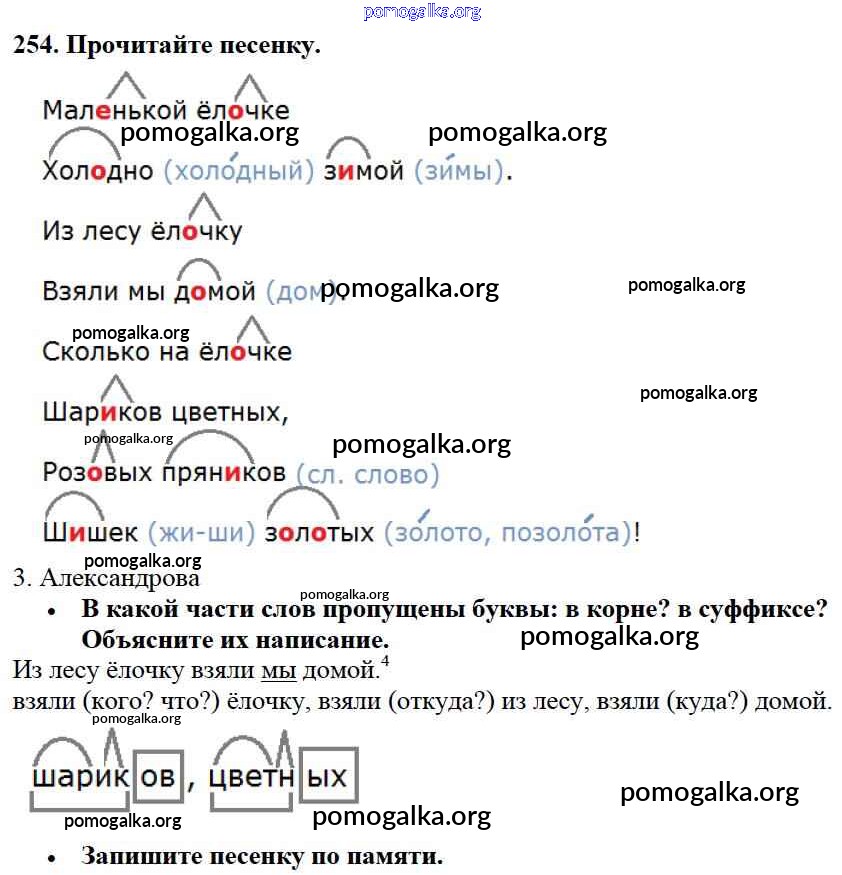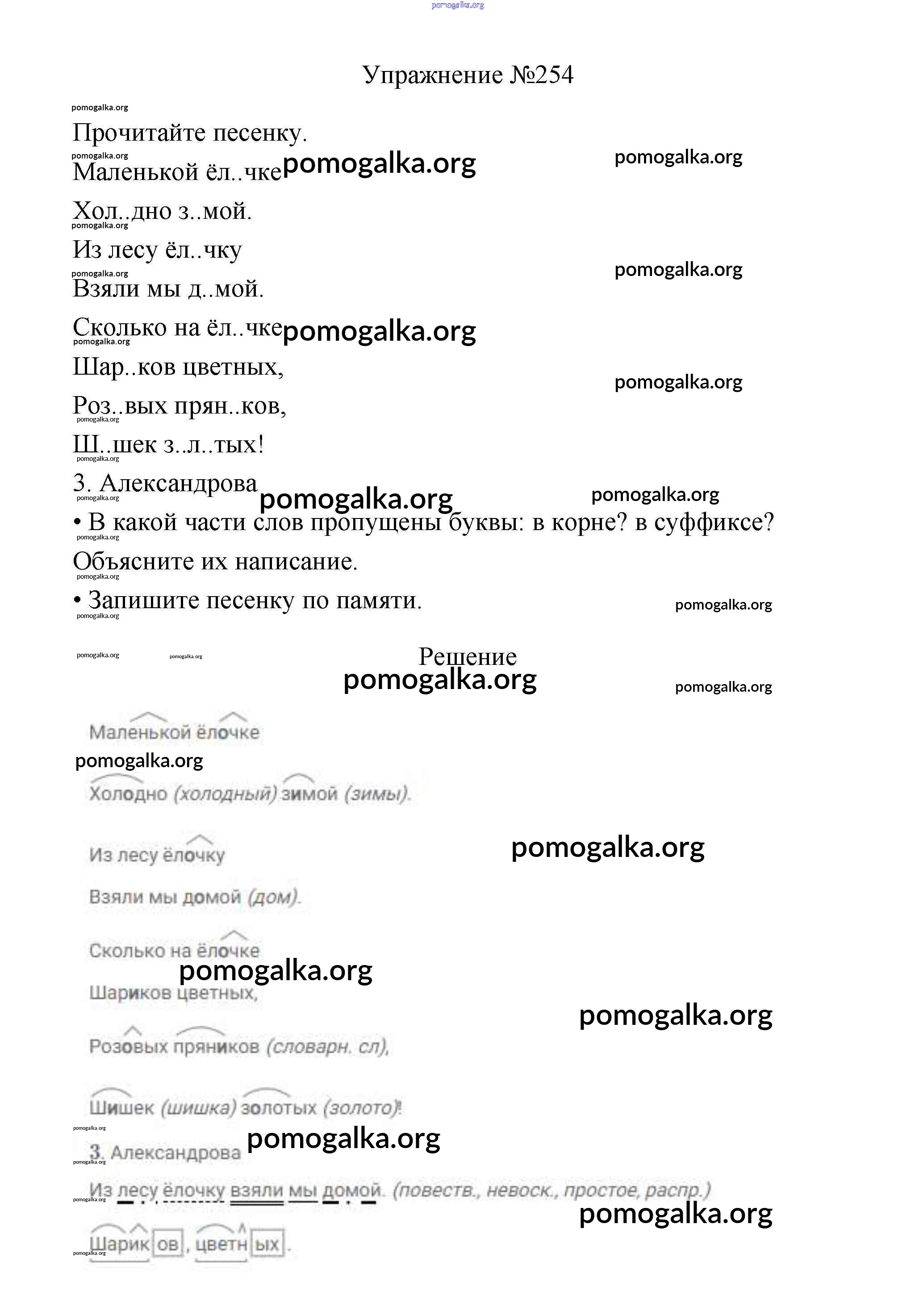 Готовые ответы - Русский язык 3 класс Канакина В.П. - упражнение № часть 1 254