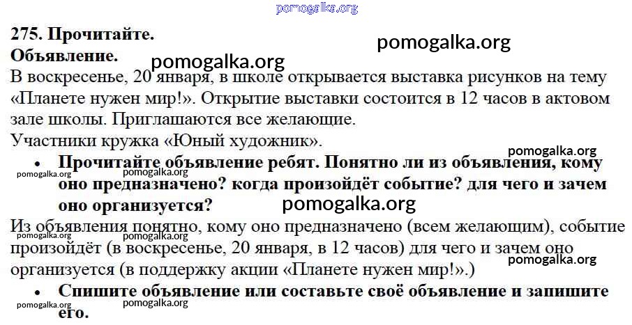 Готовые ответы - Русский язык 3 класс Канакина В.П. - упражнение № часть 1 275