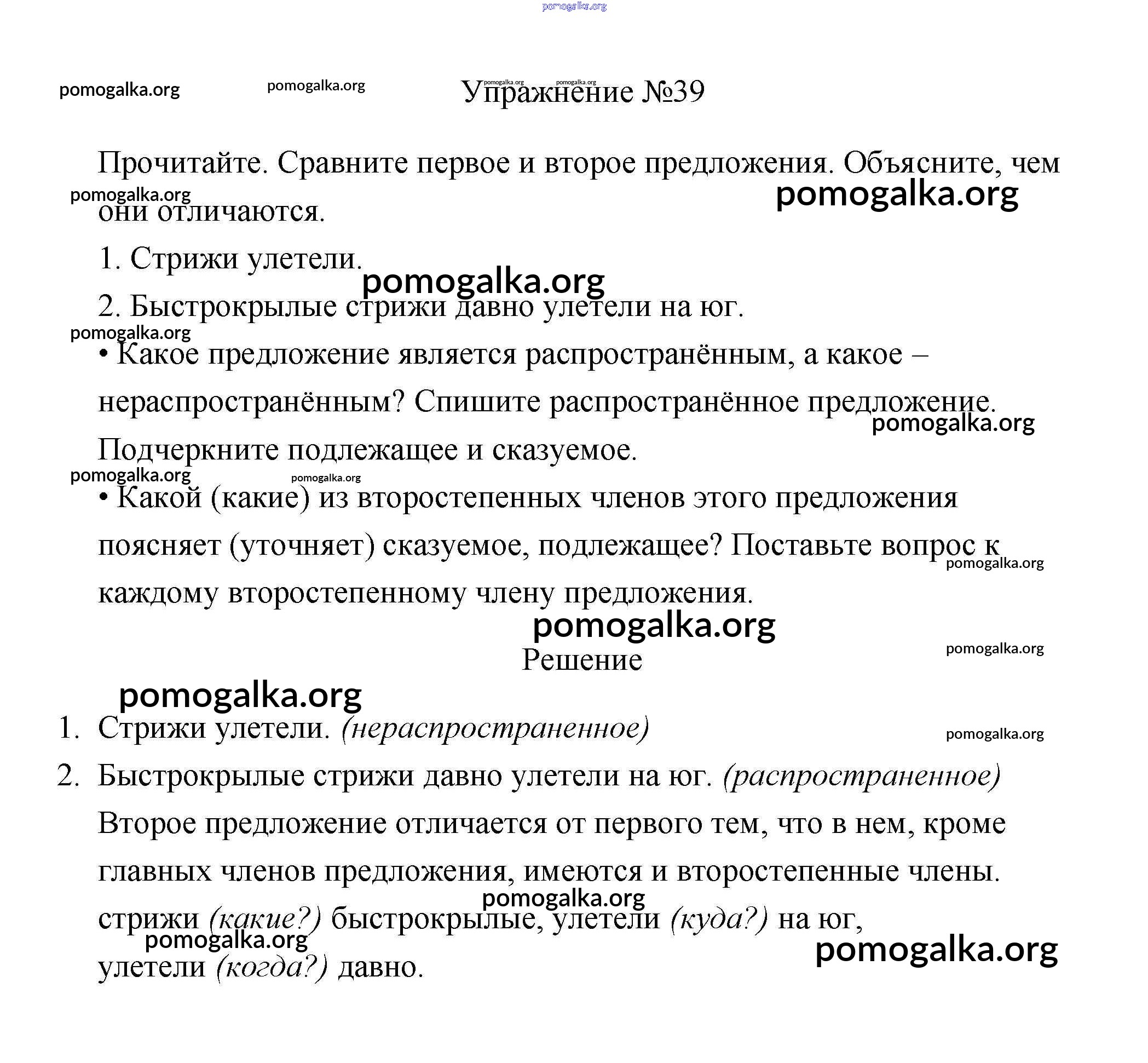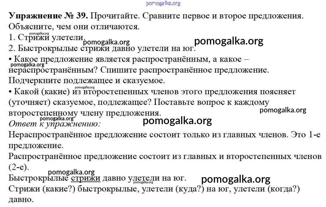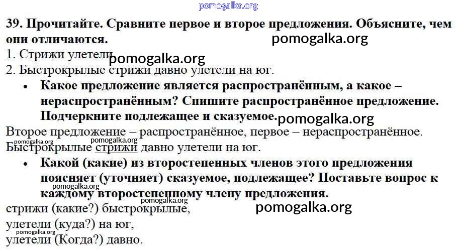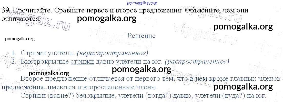 Готовые ответы - Русский язык 3 класс Канакина В.П. - упражнение № часть 1 39