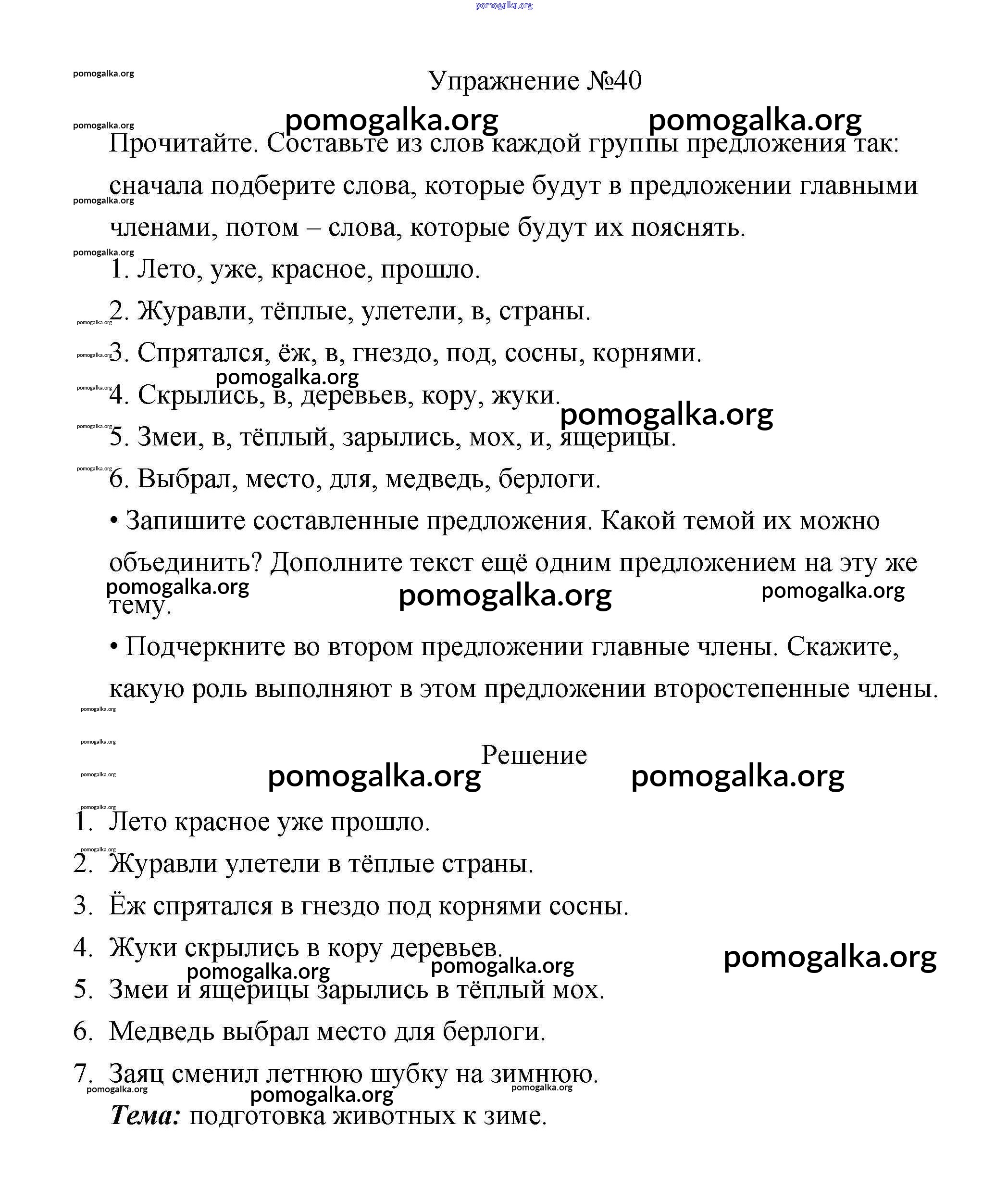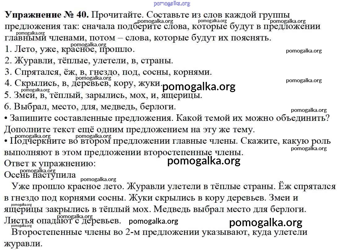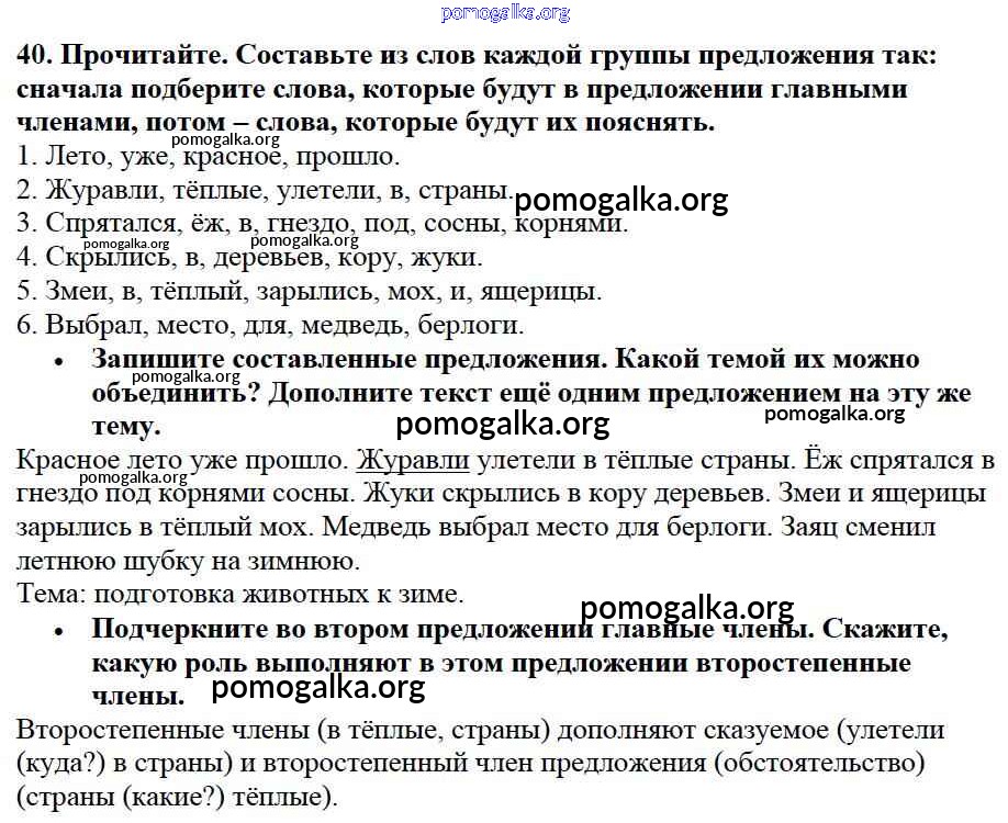 Готовые ответы - Русский язык 3 класс Канакина В.П. - упражнение № часть 1 40