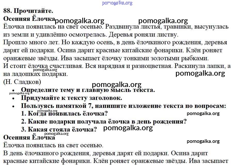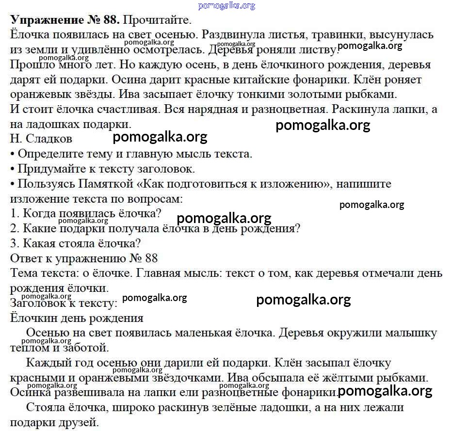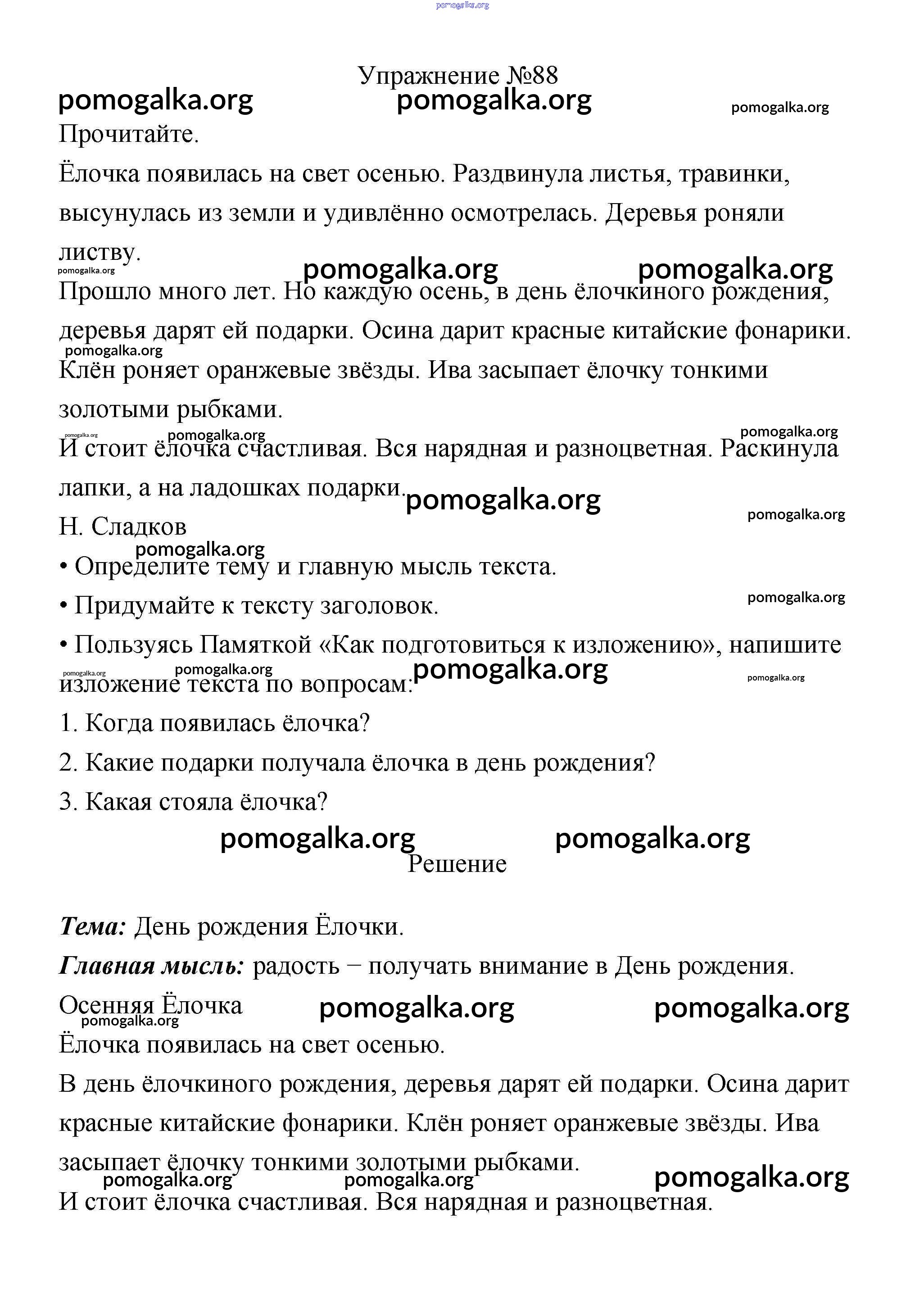 Готовые ответы - Русский язык 3 класс Канакина В.П. - упражнение № часть 1 88