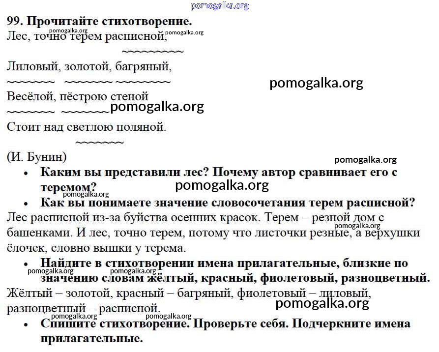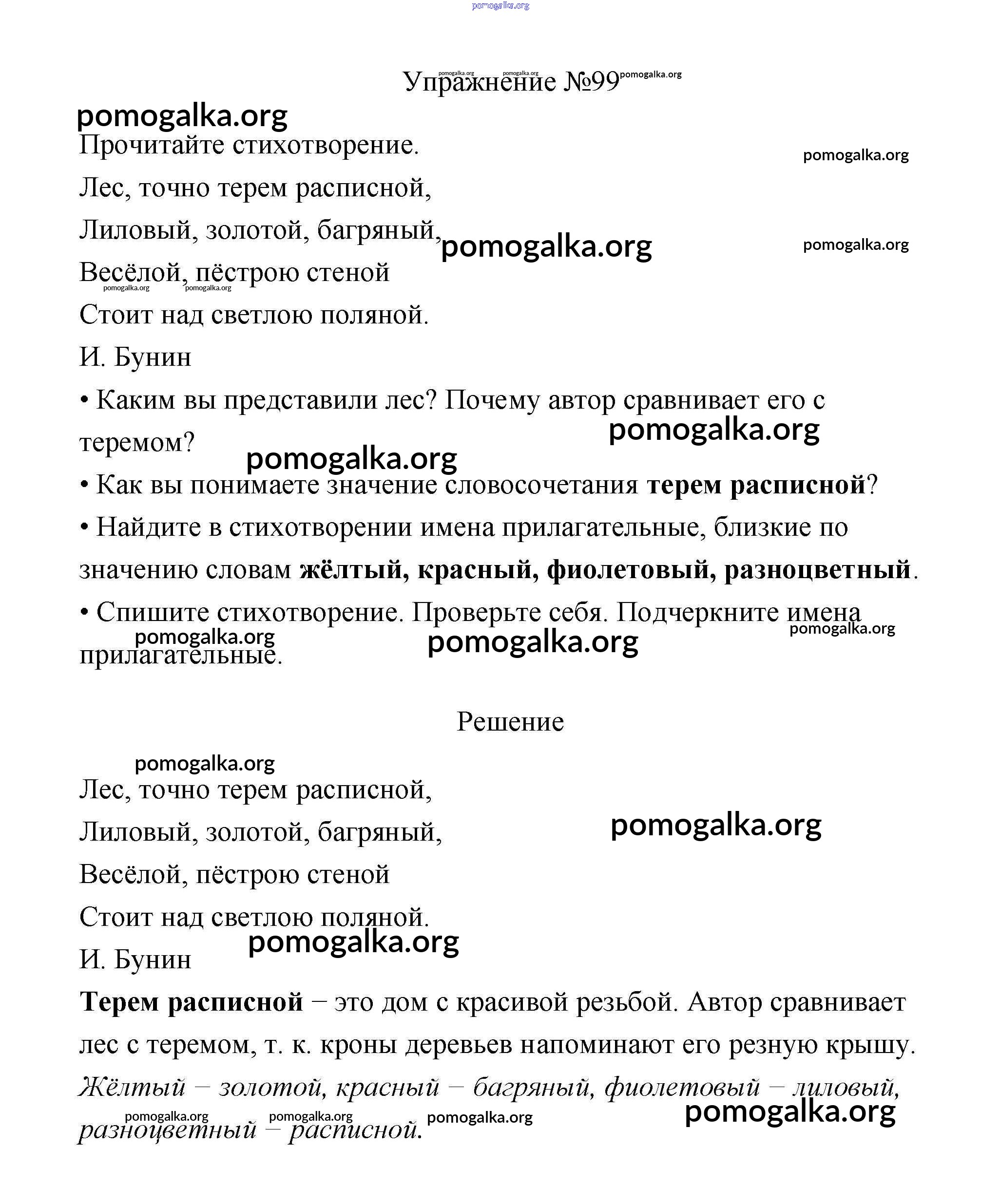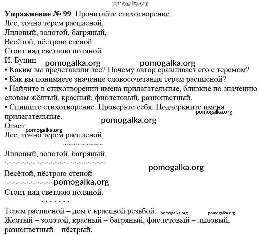 Готовые ответы - Русский язык 3 класс Канакина В.П. - упражнение № часть 1 99