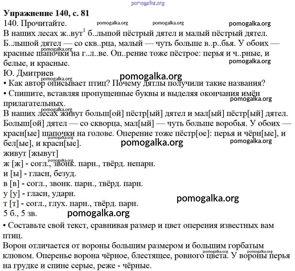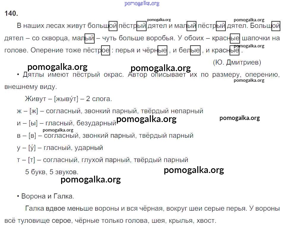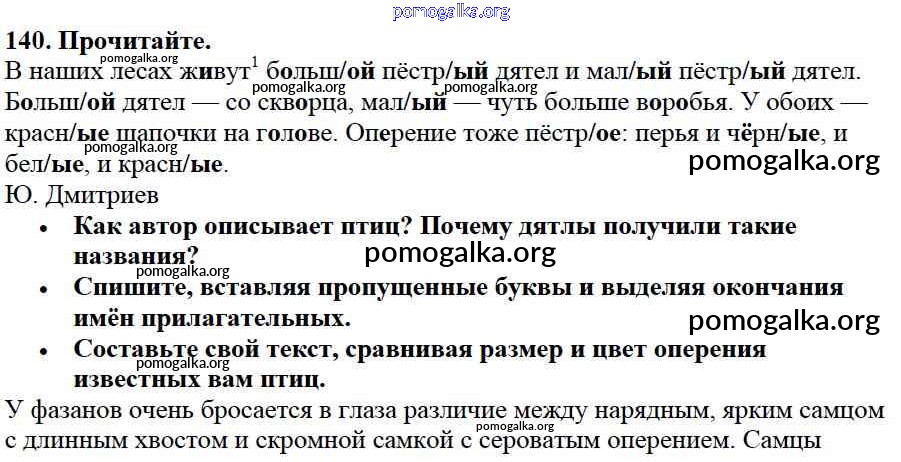 Готовые ответы - Русский язык 3 класс Канакина В.П. - упражнение № часть 2 140